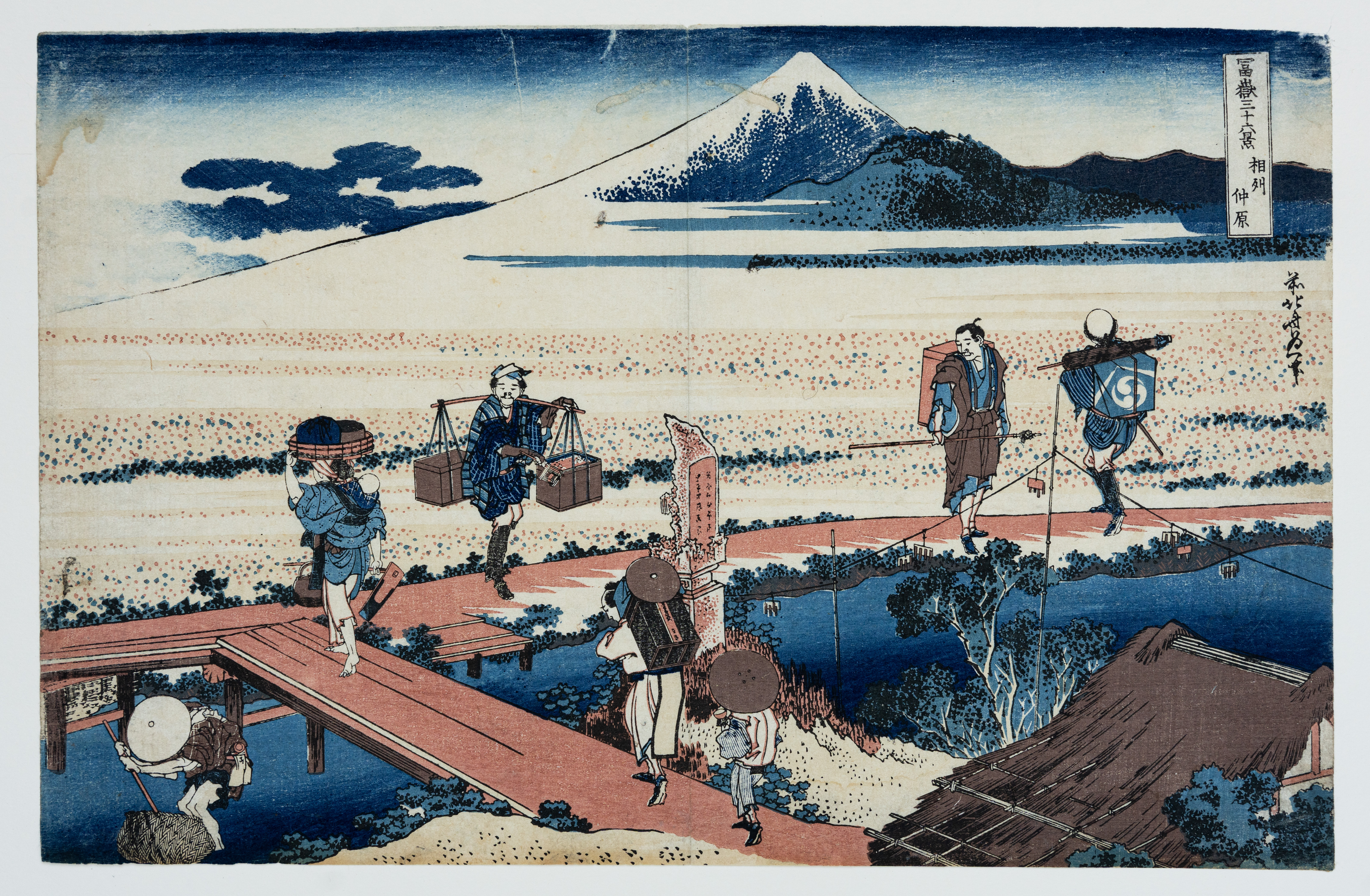 Katsushika Hokusai, Nakahara i Sagami-provinsen (Sõshũ Nakahara) fra serien Seksogtredive udsigter til Fuji (Fugaku sanjũrokkei), 1830-1831. Foto: Designmuseum Danmark