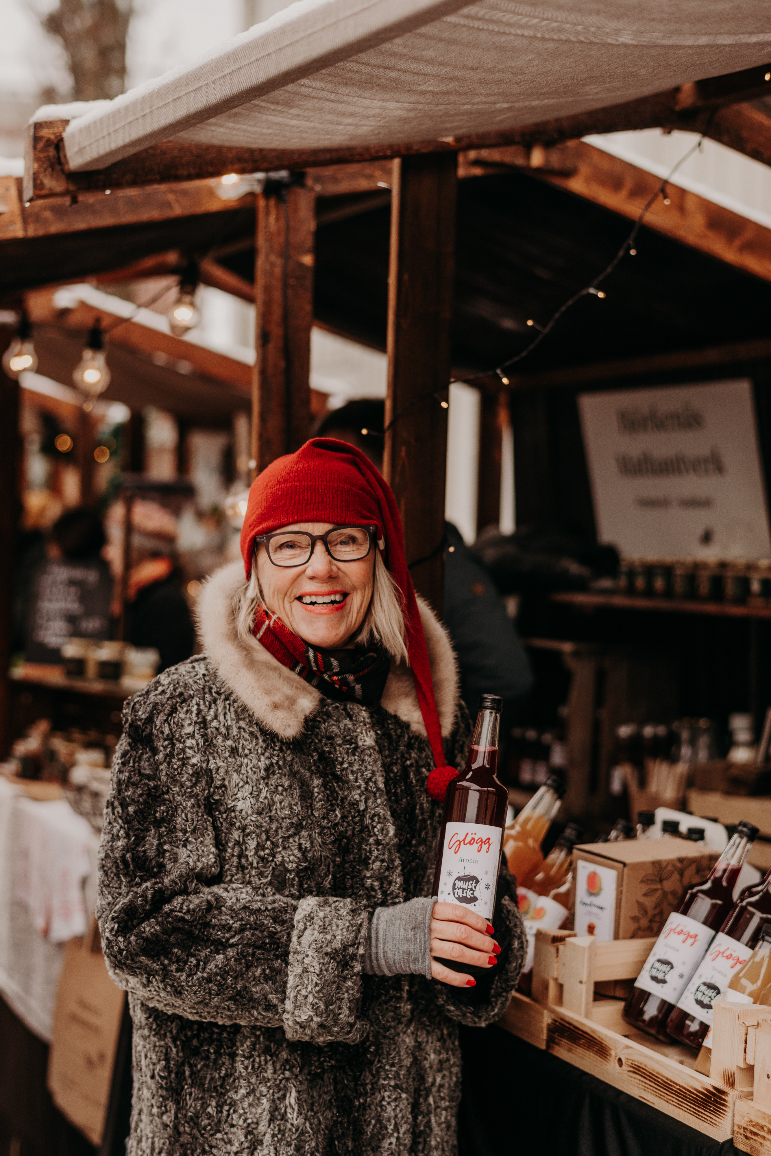 Eksjös julemarked midt i den historiske, gamle by af træhuse.