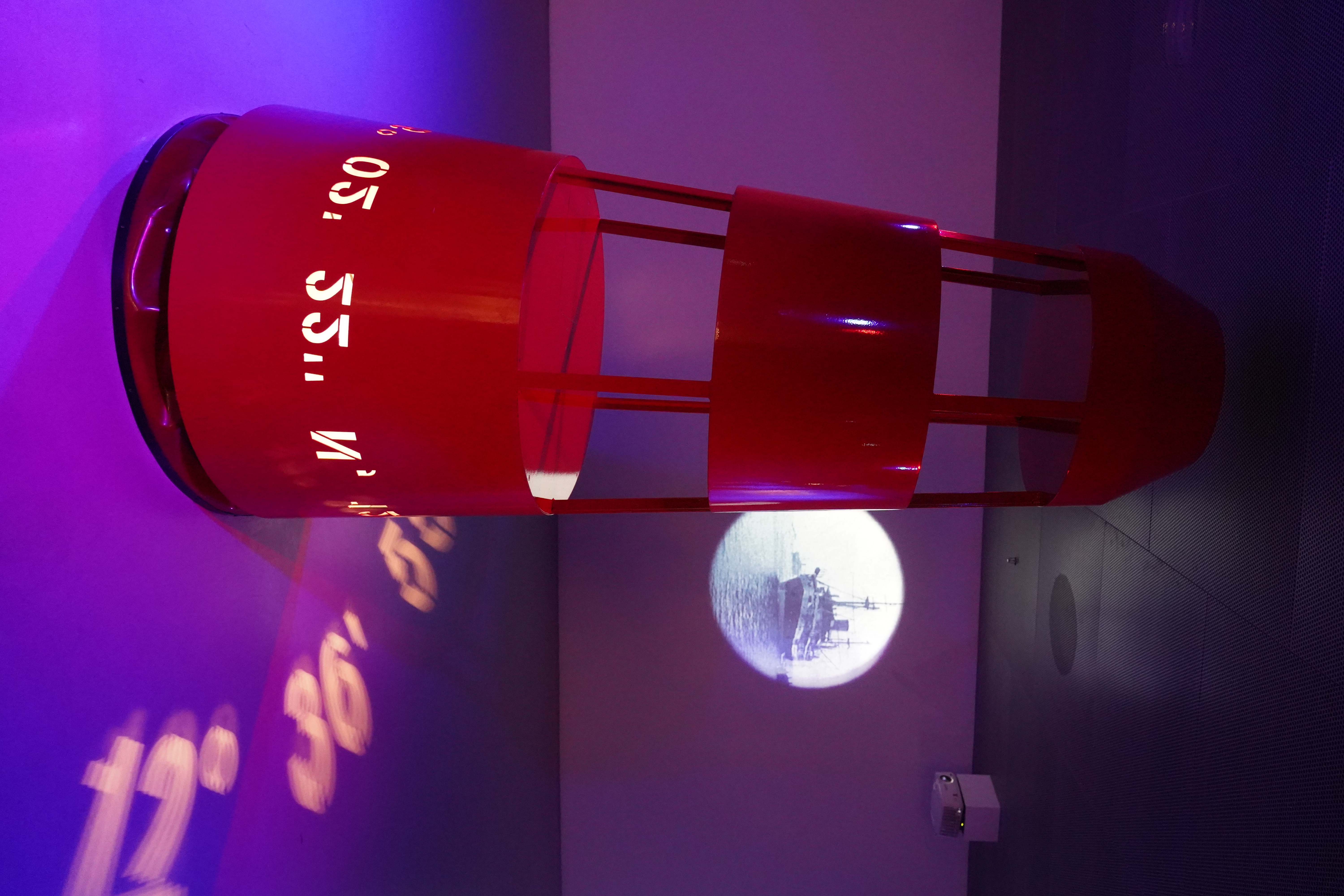 Under lyseventen GLØD - Elsinore Light Festival i Helsingør guider denne røde bøje med lysende koordinater både den søfarende og publikum frem til den præcise placering af bøjen i dokken på M/S Museet for Søfart i Helsingør. Værket er skabt af Kossmann Dejong.