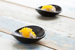 Blandt finalisterne er hampespegepølse og hampesmåkager, citron-perler af tang og gin lavet af gletsjer-is, men også noget så klassisk som rabarbertrifli efter bedste bedstemor-opskrift, men i en ny to go-version.