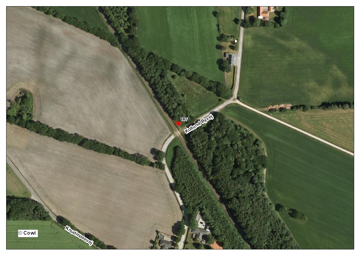Banedanmark skal opføre en helt ny mast lige nord for Nørre Kollund, hvor Kollund Byvej krydser banen. Mastens placering er markeret med en rød firkant på vedhæftede foto.