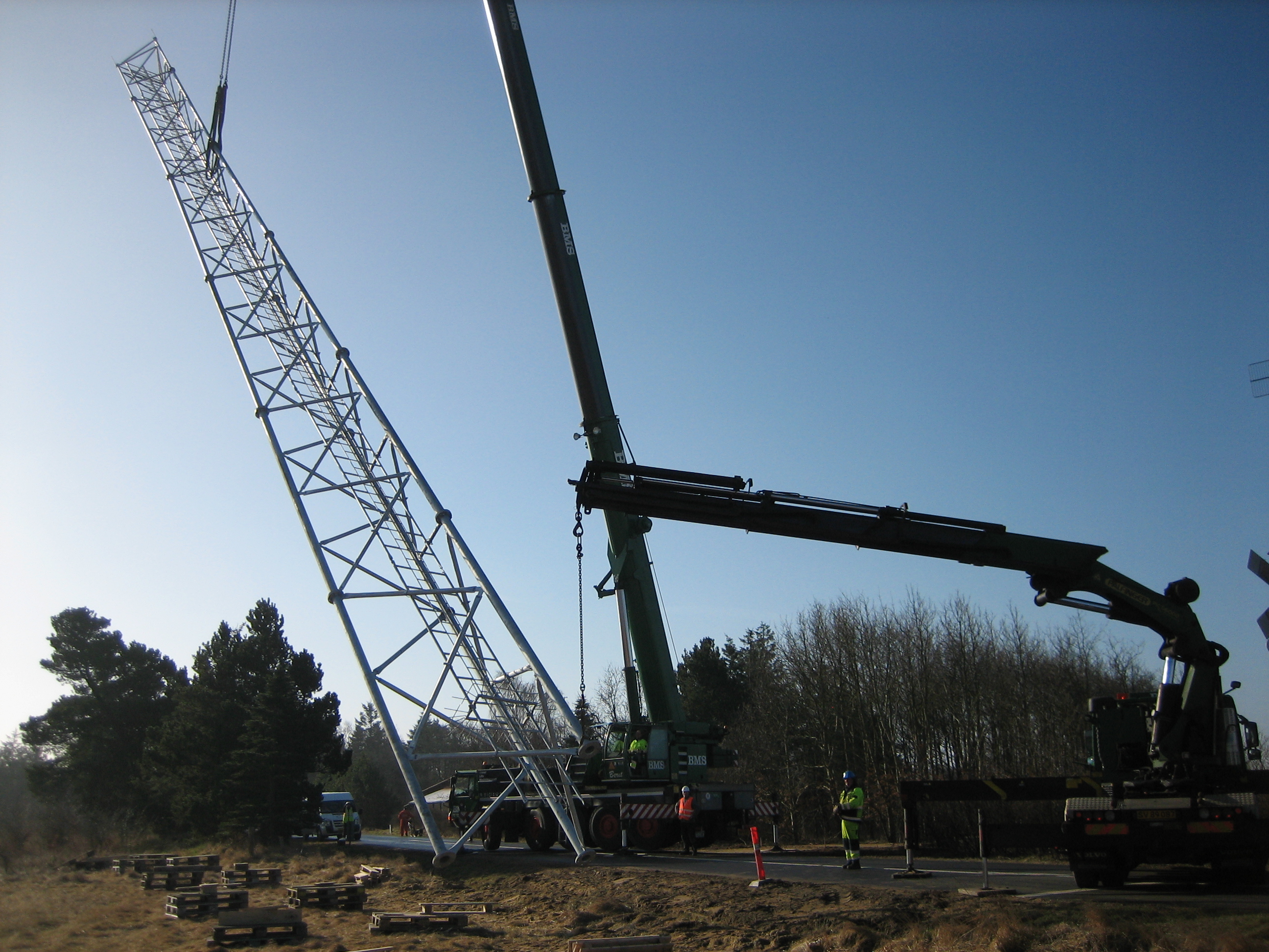 Vedlagte foto viser rejsning af en tilsvarende mast ved Roager, Ribe.