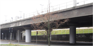 Vedhæftet fotos af hhv. broen over Enghavevej og broen over Ellebjergvej