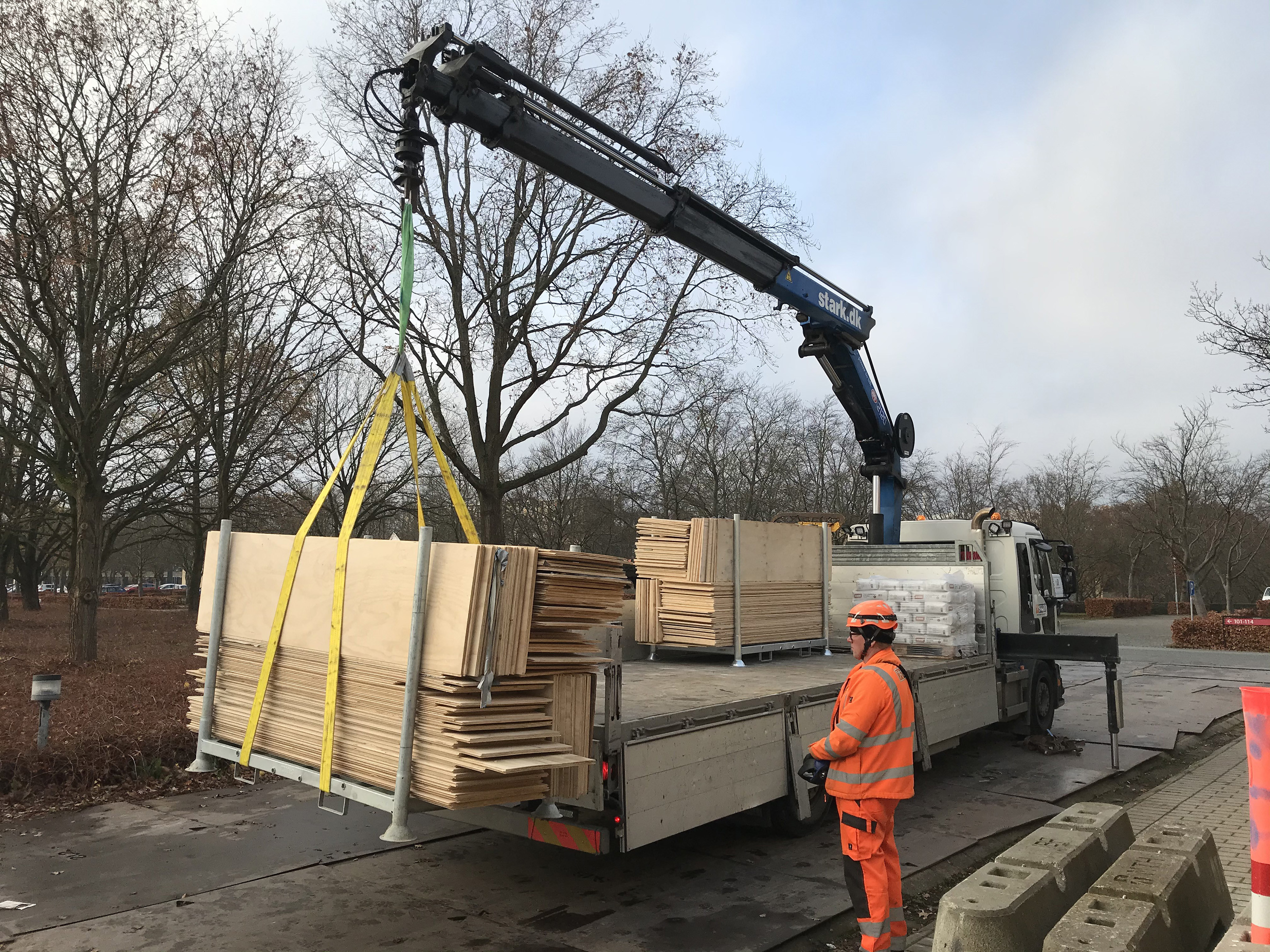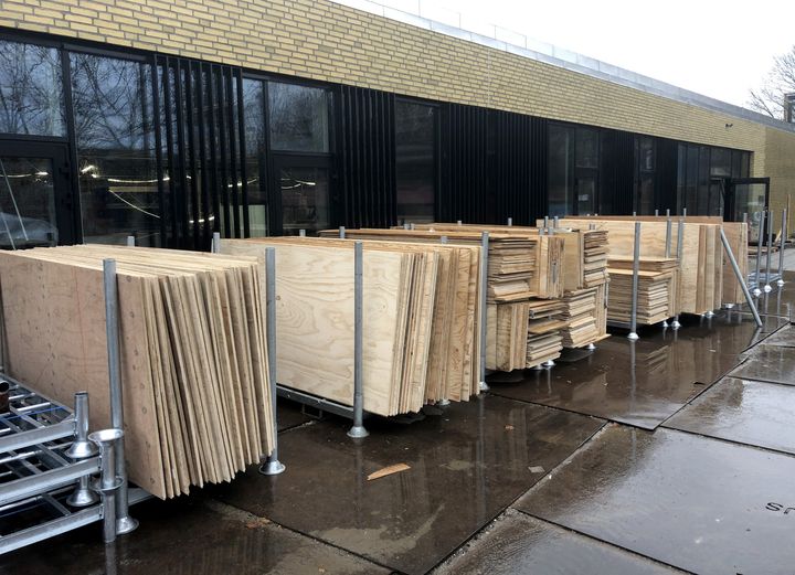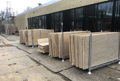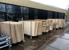 Når renoveringen er afsluttet, stilles krydsfiner-pladerne i U-jern, som STARK henter, når de er fyldte. Normalt ville pladerne blive smidt i en container og kørt væk til forbrænding.