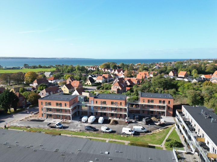 De tre punkthuse på Lundevej 38 ligger med en unik udsigt over Kalundborg Fjord og den kommende marina. Husene fremstår flotte og funktionelle med store altaner, når de inden længe byder velkommen til de første lejere.