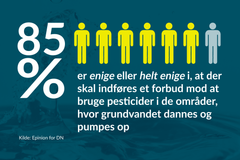 Men står det til danskerne, skal der slet ikke benyttes pesticider i de områder, hvorunder grundvandet dannes. Det viser en ny måling, som Epinion har foretaget for Danmarks Naturfredningsforening.
