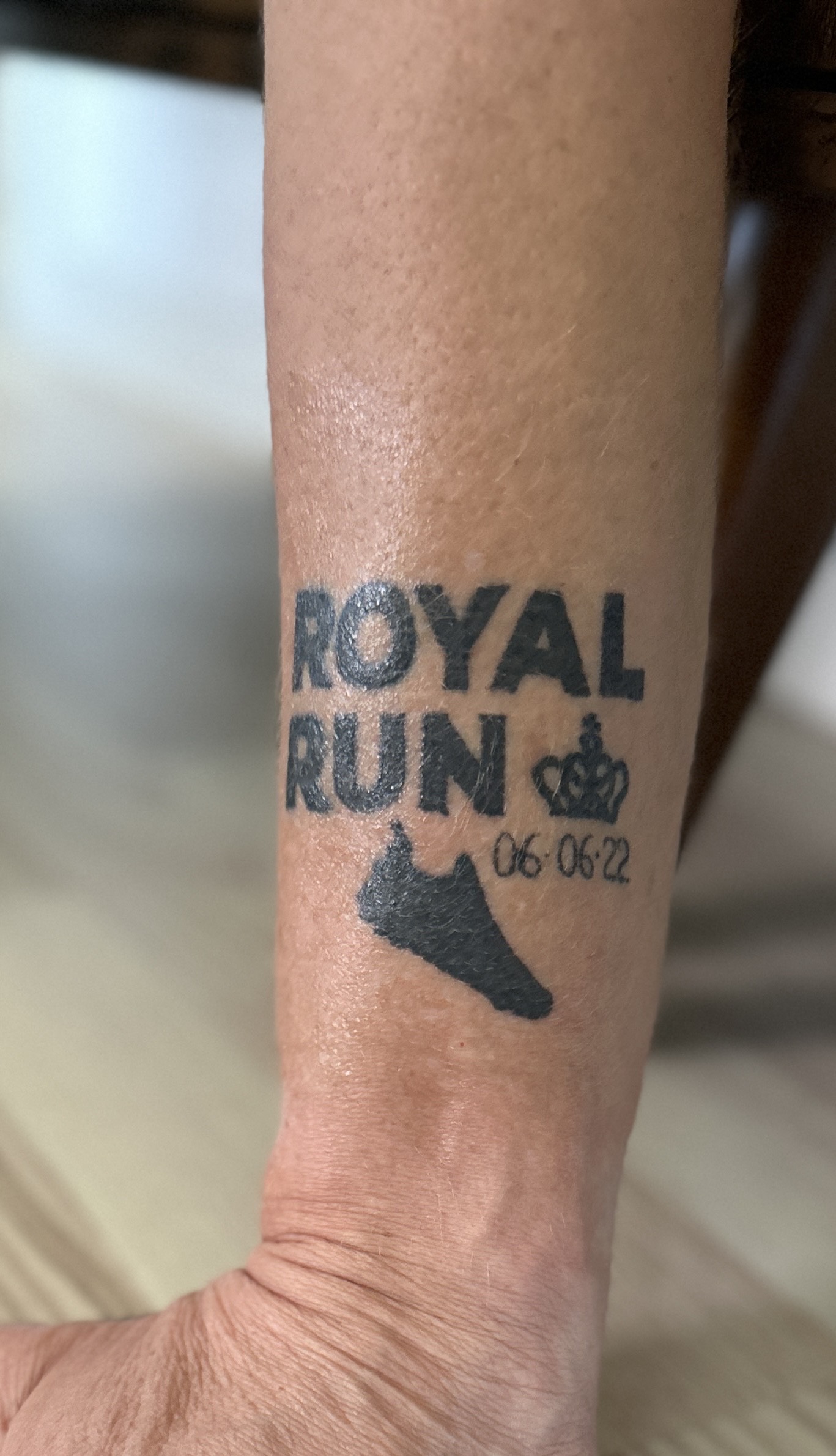 - Det var den fedeste dag i mit liv. Der var masser af mennesker, og jeg var helt oppe at køre, da jeg kom i mål, siger Buller Petersen, som efterfølgende forevigede det med en Royal Run-tatovering på venstre underarm.