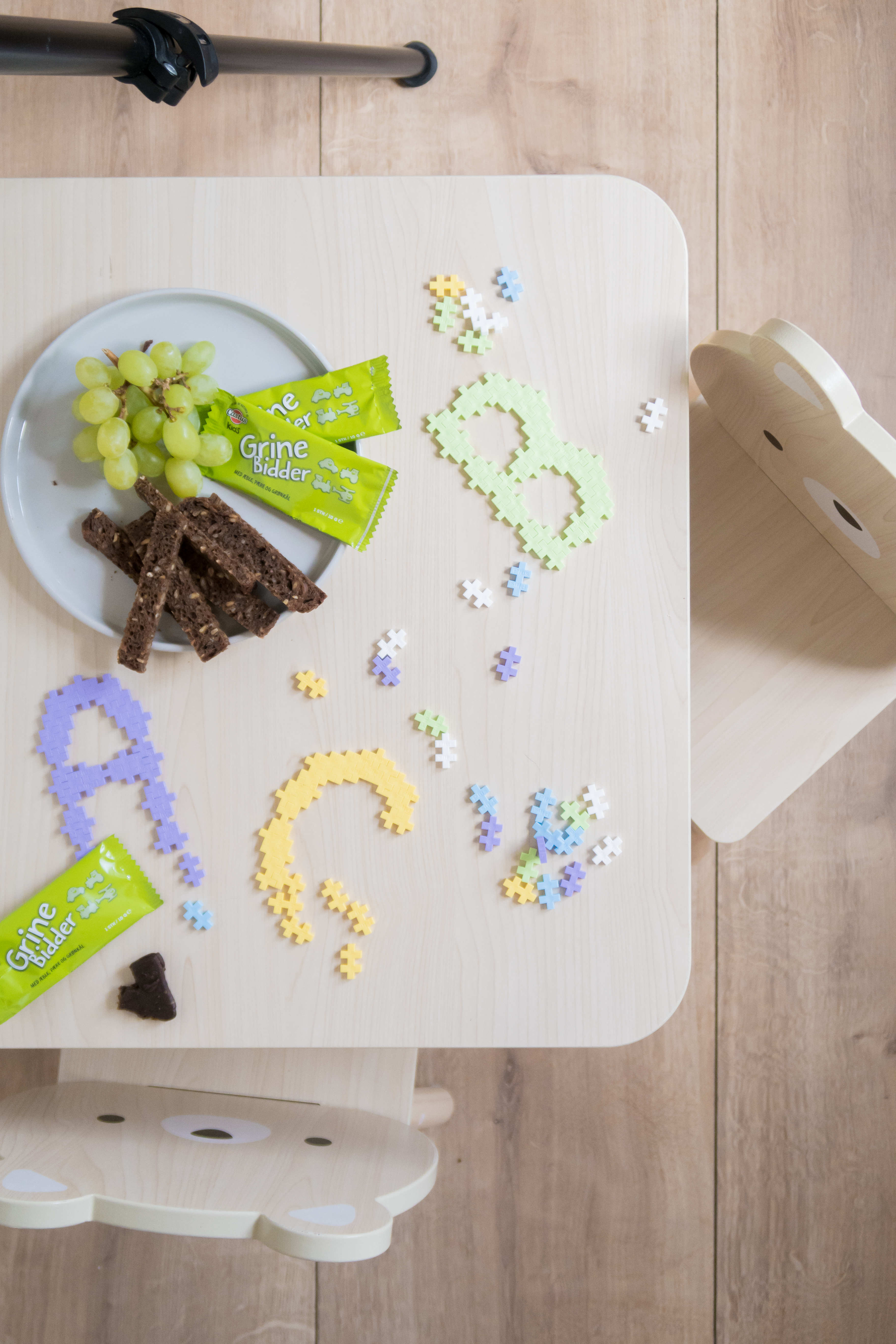 GrineBidderne giver forældre mulighed for at vælge sundt, uden at der skal blendes, udstikkes eller bruges alt for megen tid. De nye GrineBiddere bugner af vitaminer, mineraler og kostfibre, da de små smagfulde figurer er produceret udelukkende af tørret frugt og grøntsager. Derfor kan man med god samvittighed lægge dem ned til rugbrødsmadderne som en ekstra lille overraskelse til skoledagen.