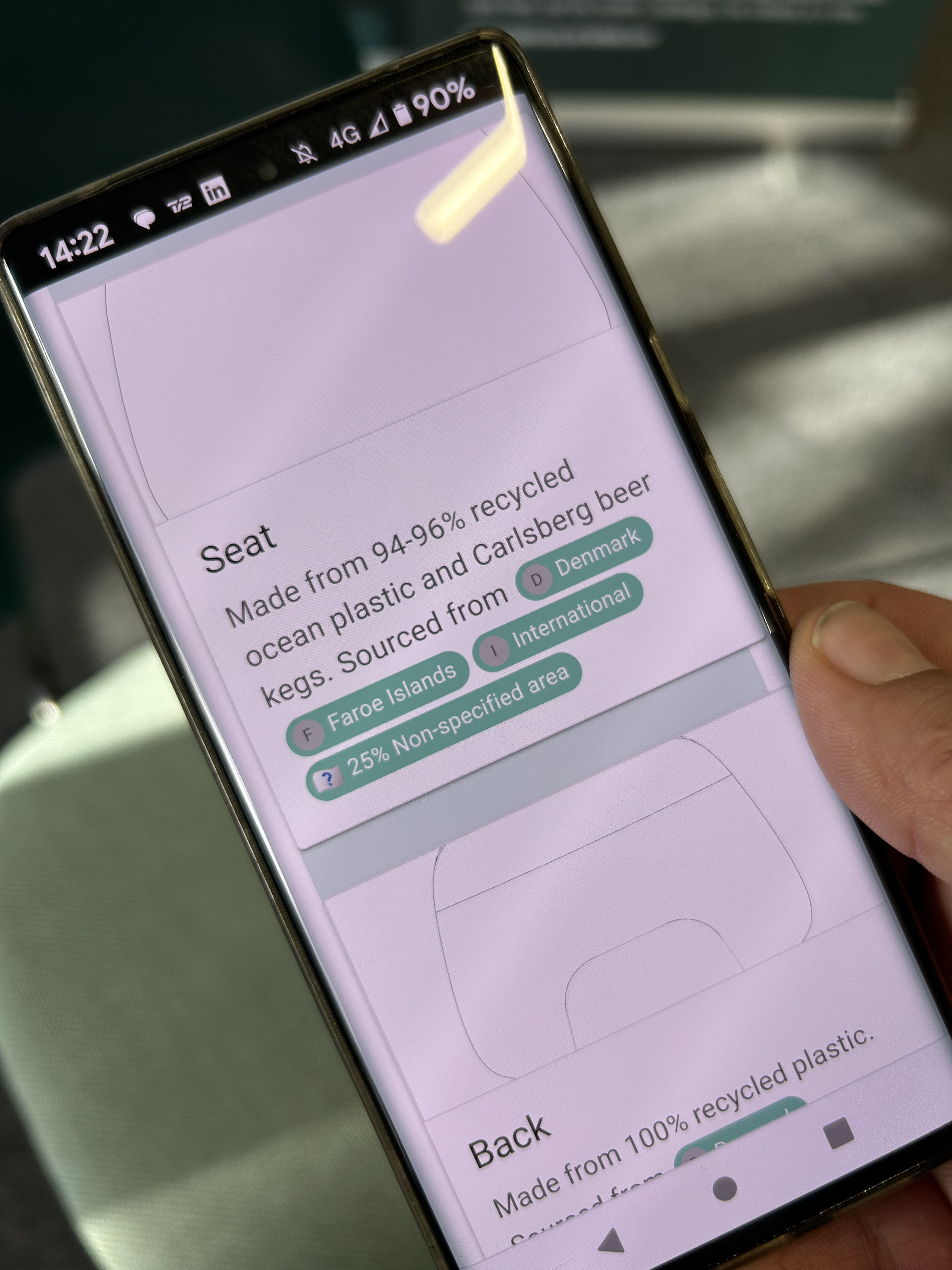 En særlig feature ved stolene er, at de er udstyret med en chip, der kan scannes med telefonen, og som informerer om stolens CO2-udledning, værdikæde, historie, m.m. Stolens ejer kan nemlig også selv tilføje informationer, hvilket gjorde to stole fra Tour de France-shoppen i København særligt populære.