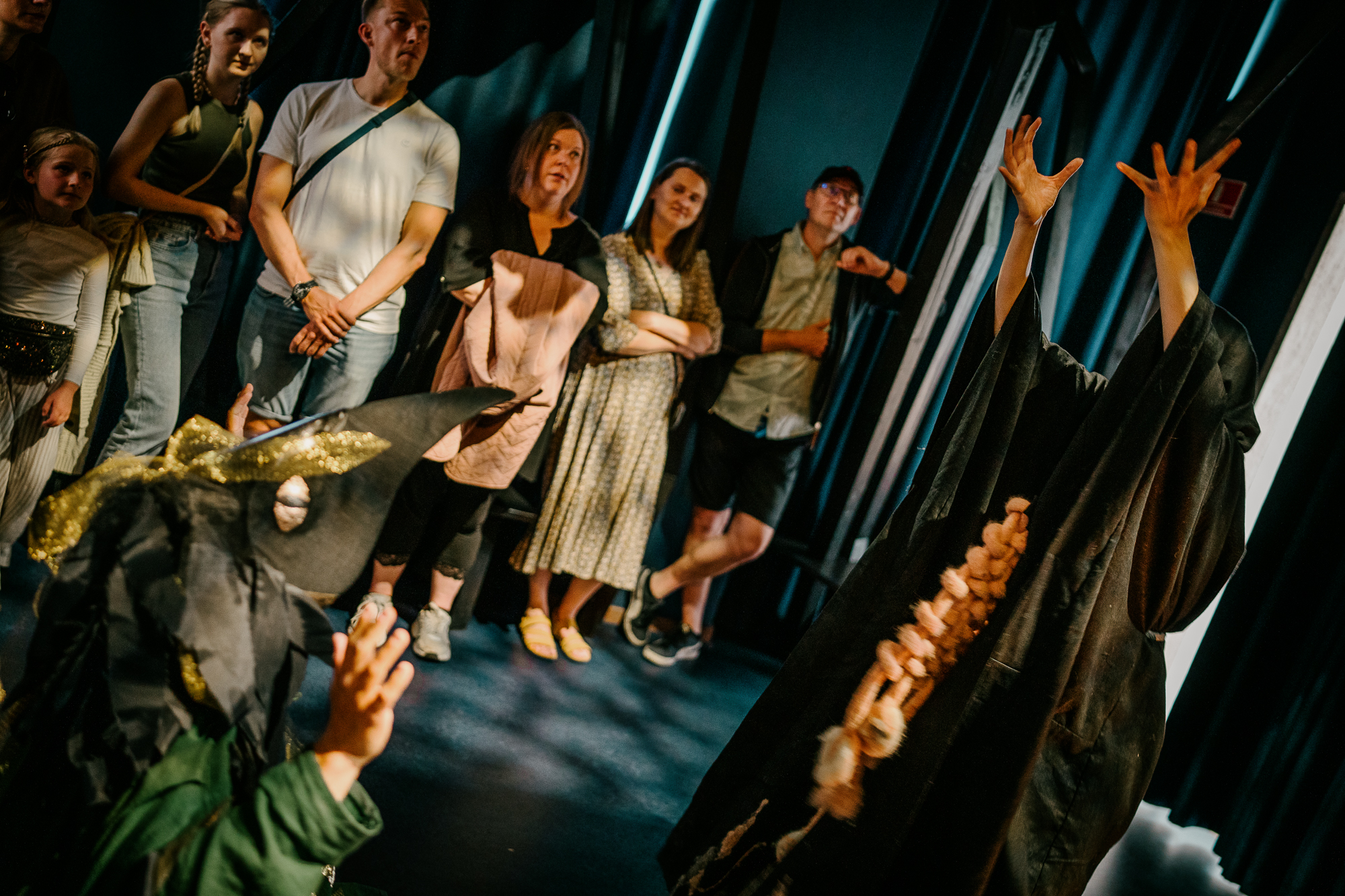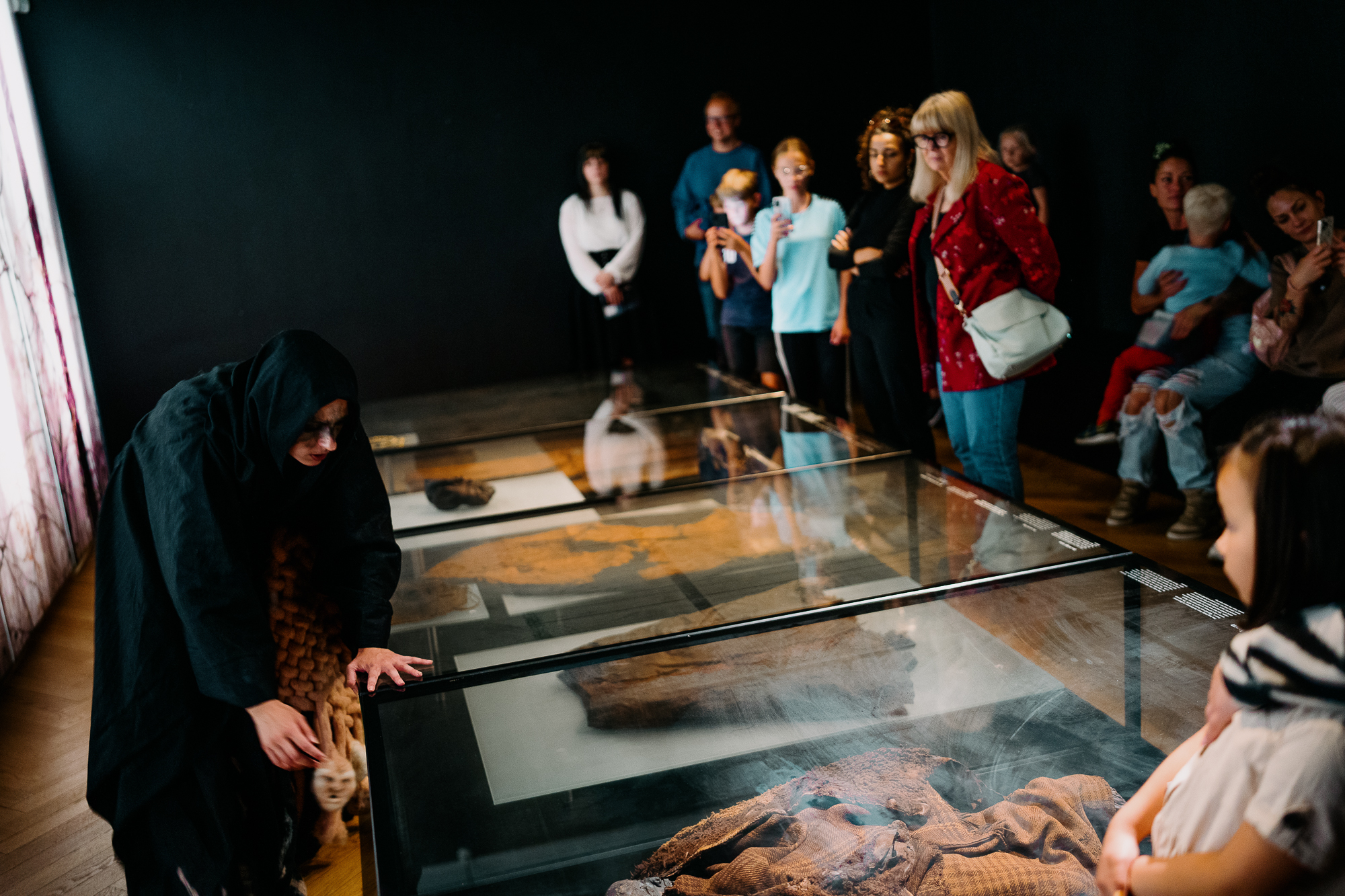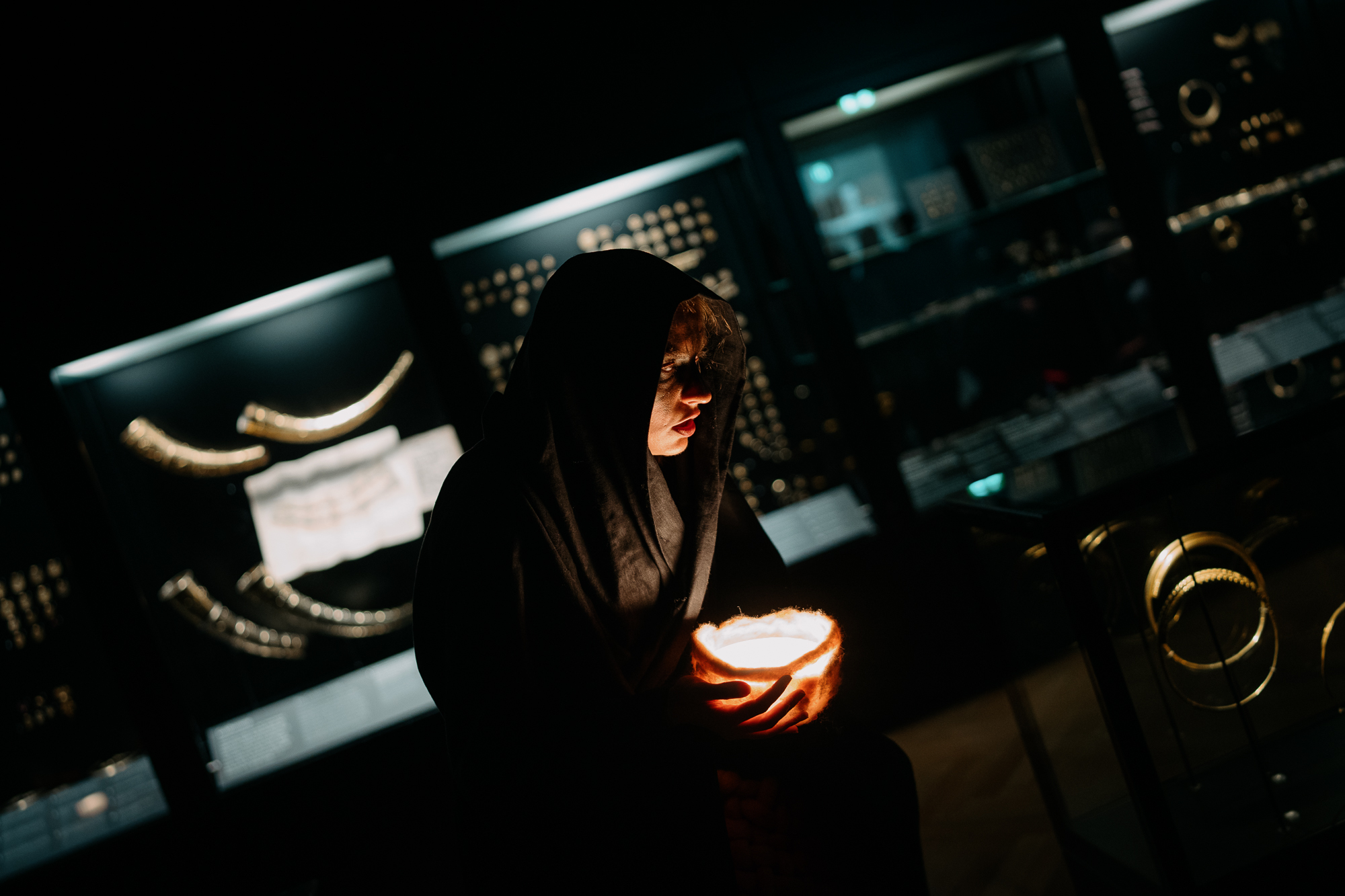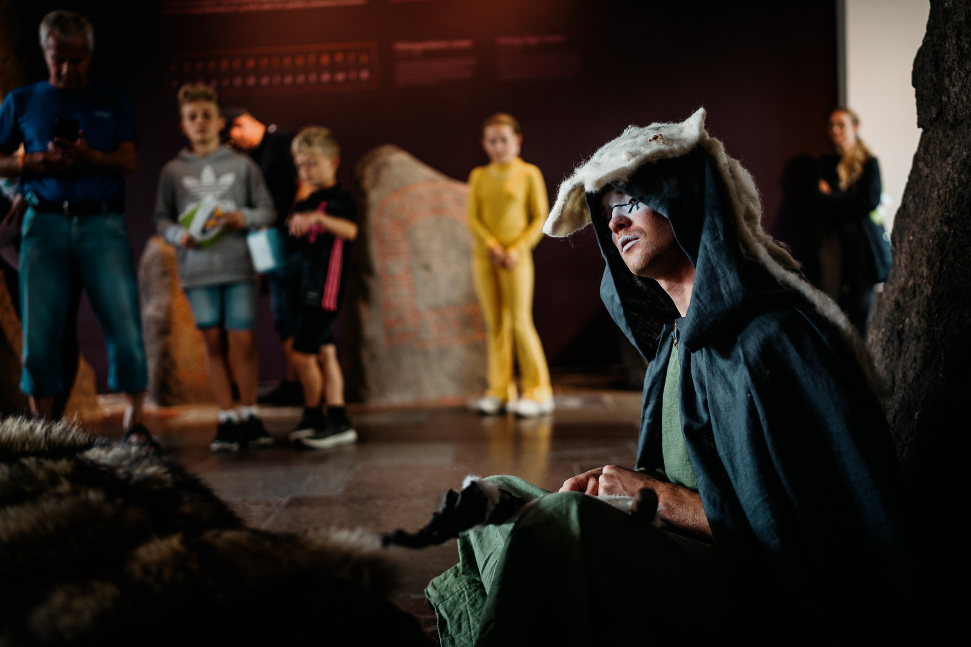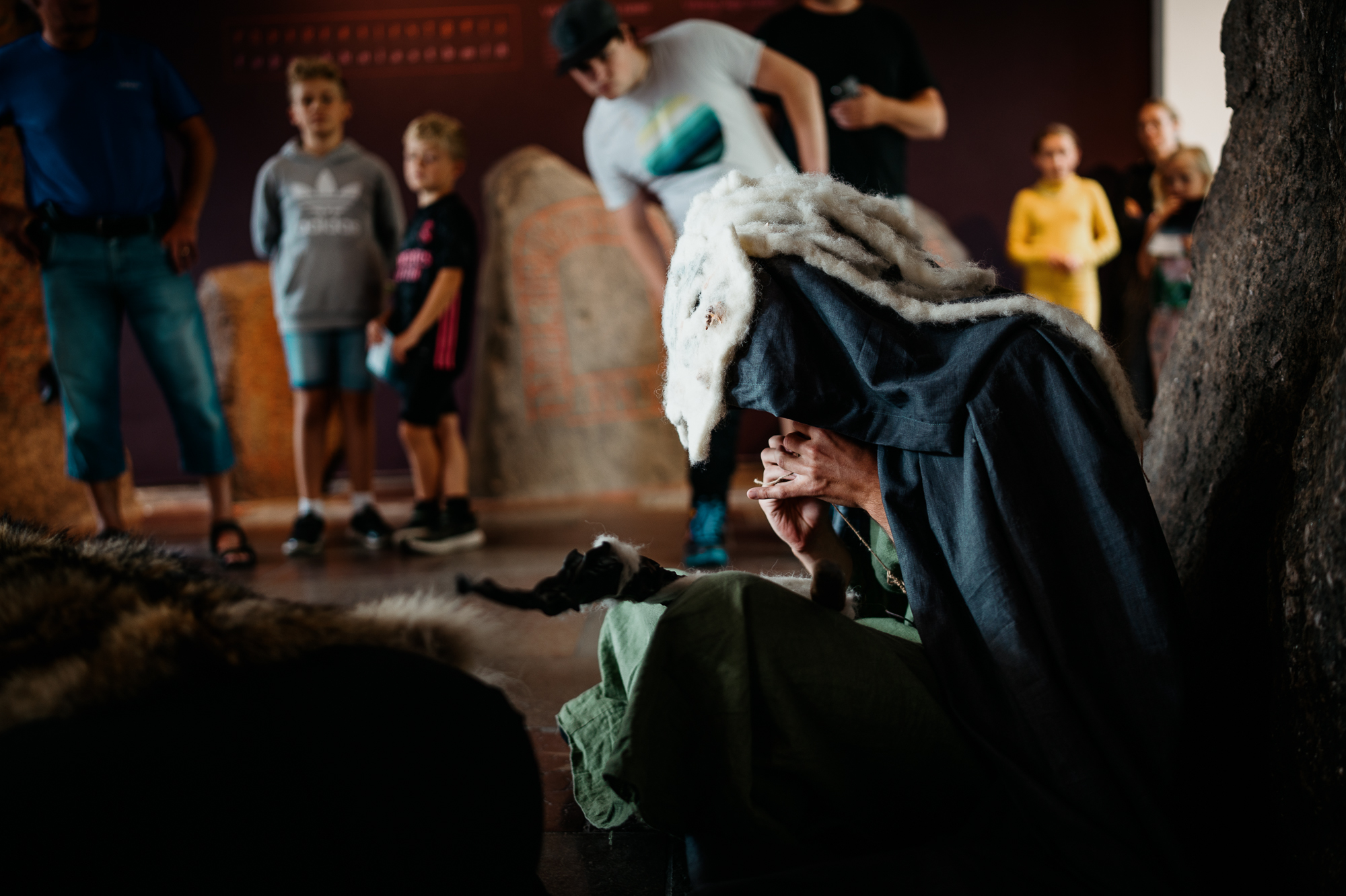 De besøgende bliver mødt af Vølven eller Nornen i Runestenshallen på museet. De guider undervejs, og følger gæsterne til guderne og væsnerne i samlingerne.