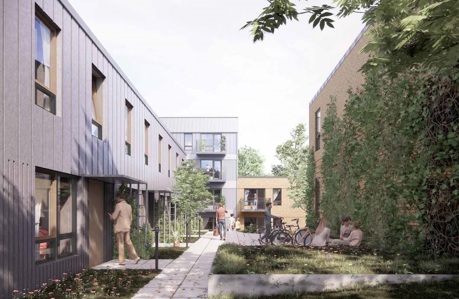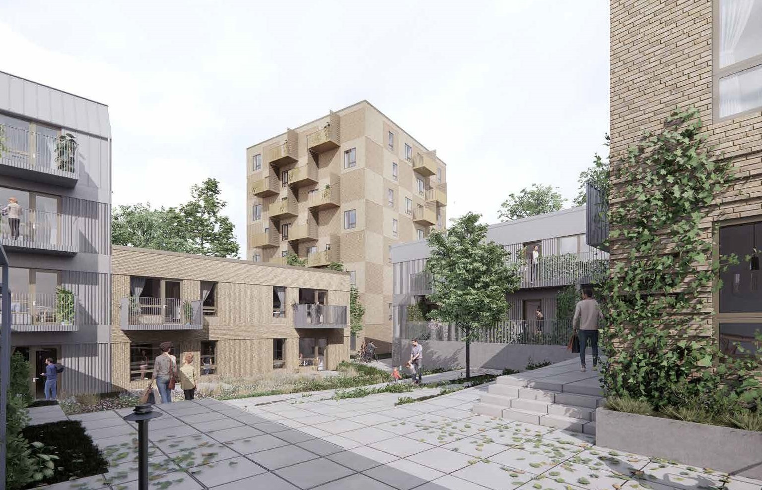 Udviklingen af de nye almene boliger her blev sat i stå i sommeren 2022, da den tidligere totalentreprenør gik konkurs. Men nu genoptages projektet, efter kommunen har godkendt de mindre justeringer af projektet, som Dansk Boligbyg og bygherren har ønsket:
