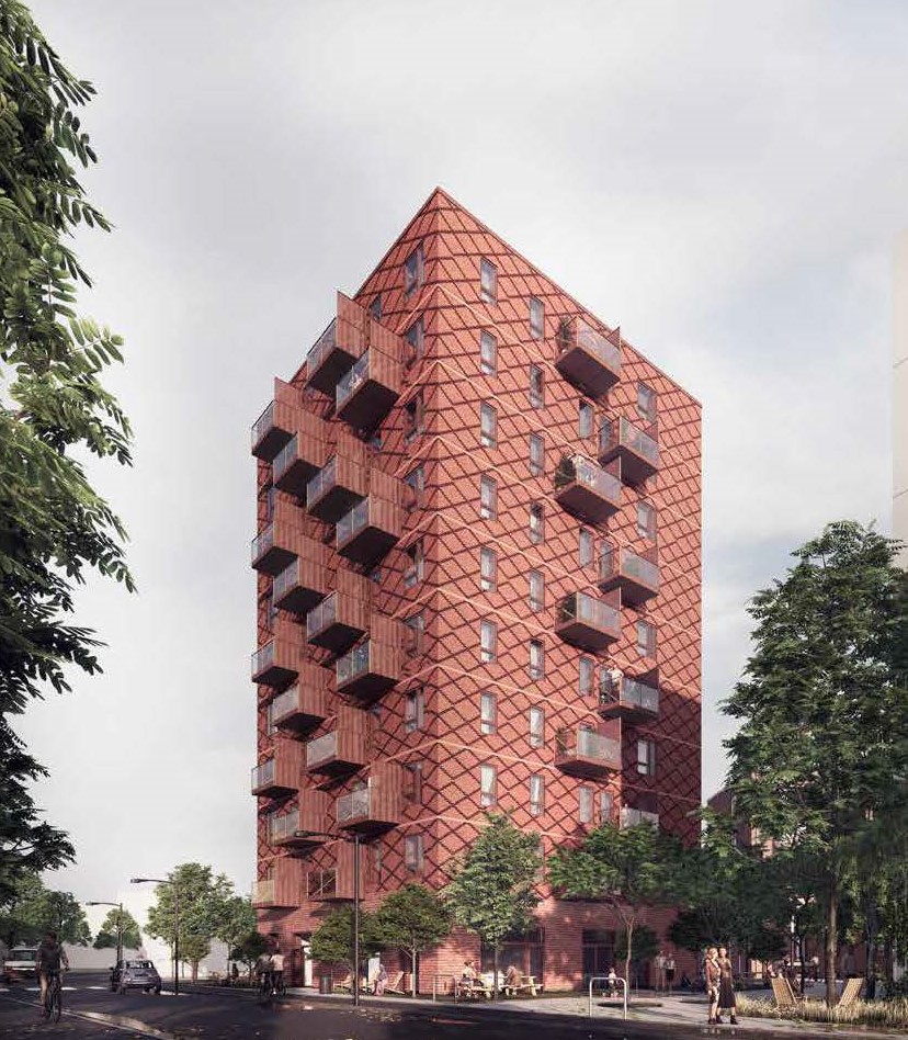 De to punkthuse med fladt tag opføres som etagebyggeri på henholdsvis otte etager med i alt ca. 2.600 kvadratmeter og 10 etager med i alt ca. 3.250 kvadratmeter. Det ene af punkthusene får desuden delvis kælder.