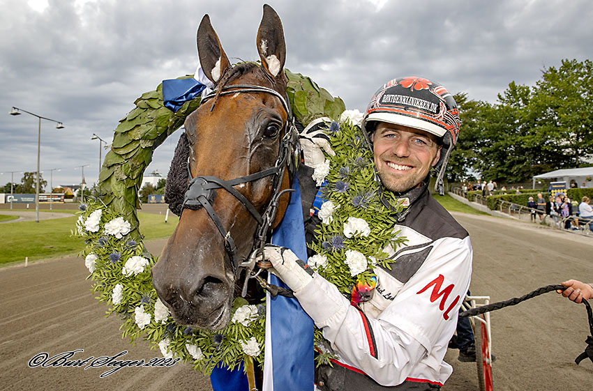 - Det er svært at tænke lige nu. Lige nu er jeg bare kongestolt over alle dem, der hjælper mig, sagde Michael Lønborg i vindercirklen foran de mange tilskuere på Charlottenlund Travbane.
