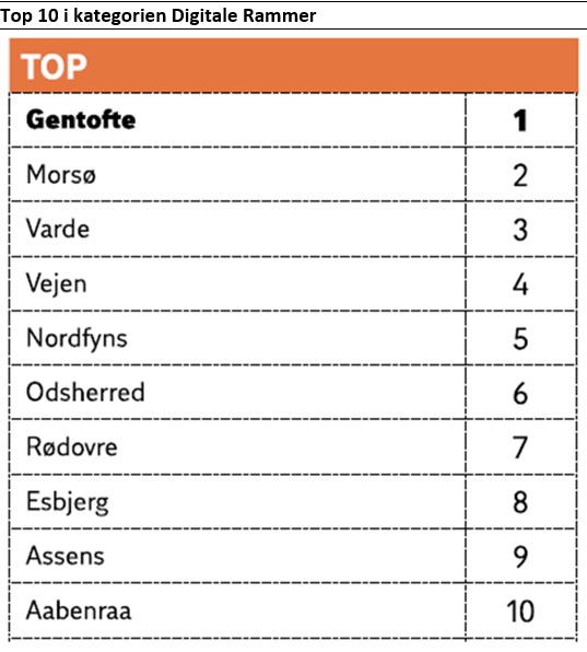 DI foretager hvert år en undersøgelse af erhvervsvenligheden i de danske kommuner og herunder af kommunernes digitale infrastruktur. Det er her Gentofte kommer ind på en 1. plads. Knap 8000 virksomheder har svaret i undersøgelsen.