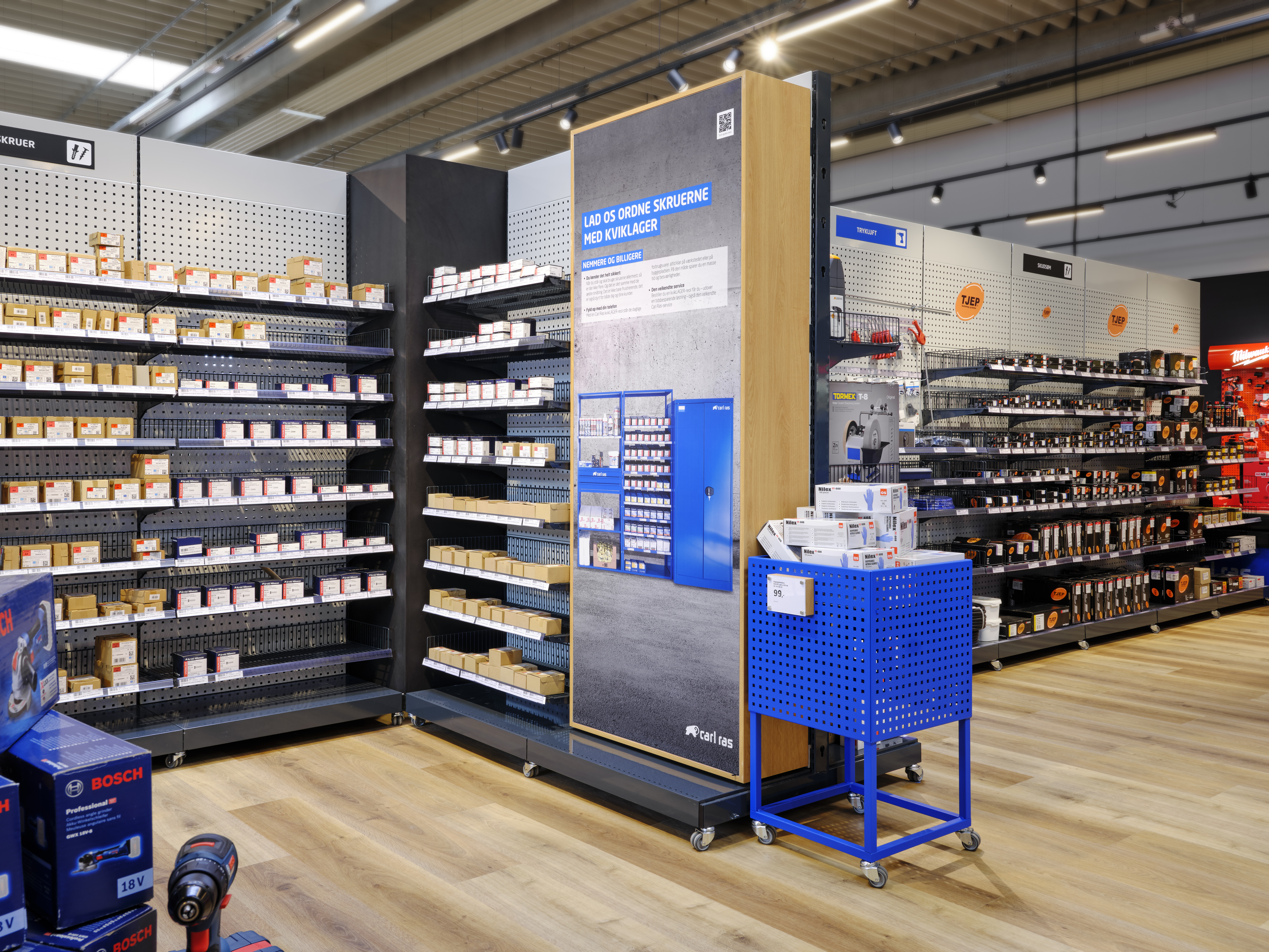 ”Målet med den nye butiksindretning er at give håndværkerne en bedre kundeoplevelse, når de handler hos os, så de kan blive inspireret og hjulpet hurtigere på vej i deres travle hverdag. Den nye indretning skal sikre, at butikken er overskuelig og nem for dem at finde rundt i. Uanset, om de har brug for rådgivning, eller hvis de ved præcis, hvad de skal have, men blot ønsker at finde varerne hurtigst muligt,” fortæller Retail Marketing Manager i Carl Ras, Thomas Stubbe Teglbjærg, og tilføjer, at butikken for eksempel er opdelt i otte forskellige produktkategorier og med bedre skiltning.