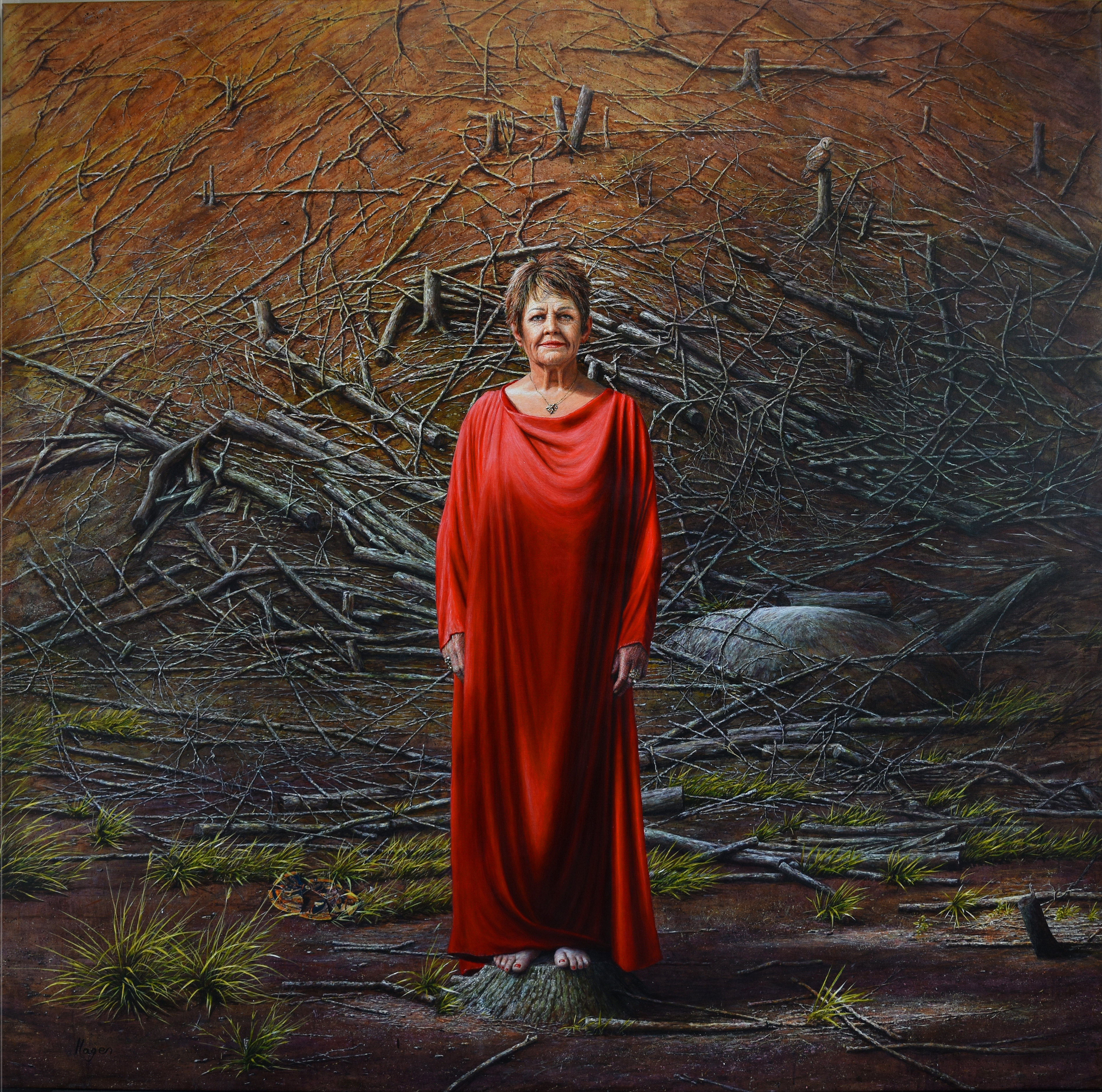 ”Jeg arbejder med myten, kulturhistorien og samtiden. Vi har gennem vores lange kulturhistorie set civilisationer gå under og nye opstå, hvor såvel naturen som menneskeheden har været medvirkende hertil. I værket reflekterer jeg over det, at kunsten består igennem århundreder, og det, at vi fortolker kunsthistoriens værker ind i vores tid. Disse ting er for mig store og berigende at dyrke. Ja, i værket er der destruktion, men dér hvor kunstens gudinde – Ghita – står, er der grønt og liv.”