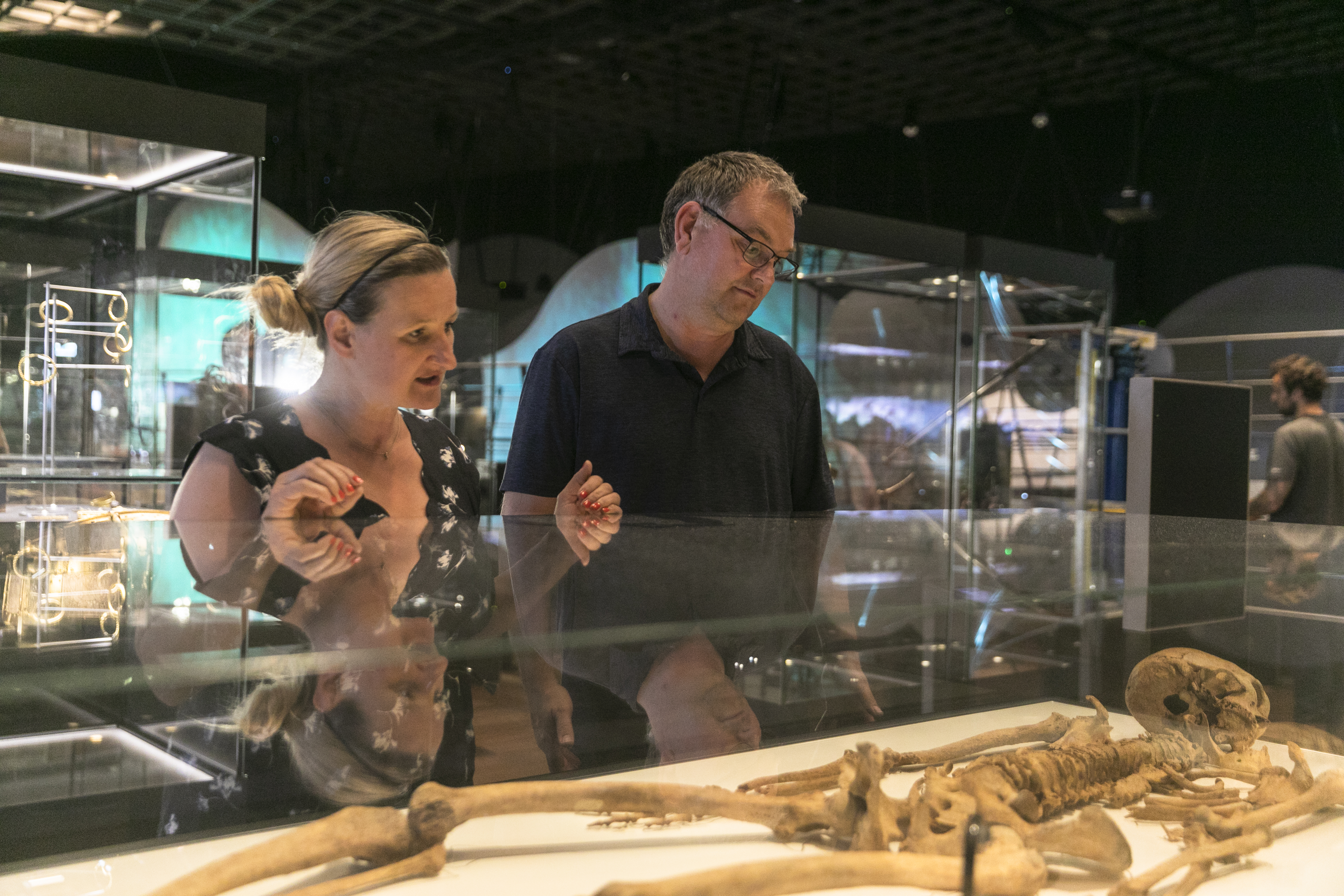 I udstillingen får gæsten et indblik i vikingernes liv. Ny naturvidenskabelig forskning afslører, hvordan de så ud, hvad de spiste, og hvilke livsstilssygdomme de døjede med. I forbindelse med undersøgelser af vikingegrave fandt forskere et genetisk match mellem en viking på Fyn og en viking fundet i en massegrav i Oxford. Det viste sig, at de er beslægtede og kan være halvbrødre. I udstillingen er de forenet efter 1000 år og lagt side om side, så de kigger på hinanden. Men nu skal de adskilles igen.