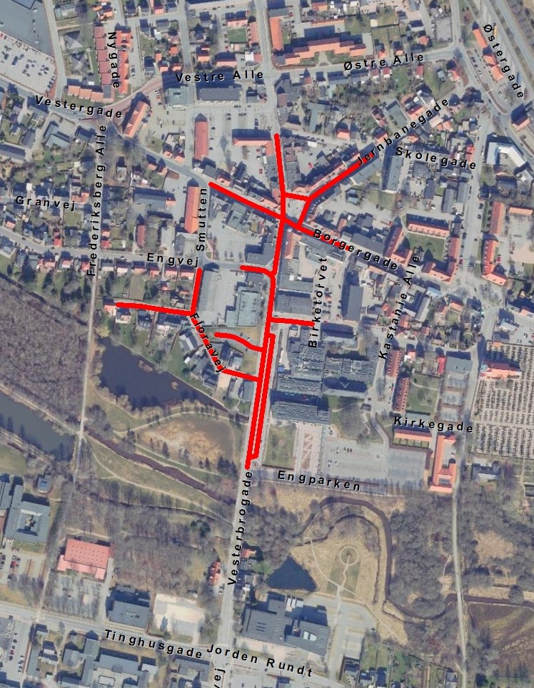 - Den centrale bymidte vil være afspærret. Dette omfatter dele af Borgergade, Vestergade, Jernbanegade og Nørregade.