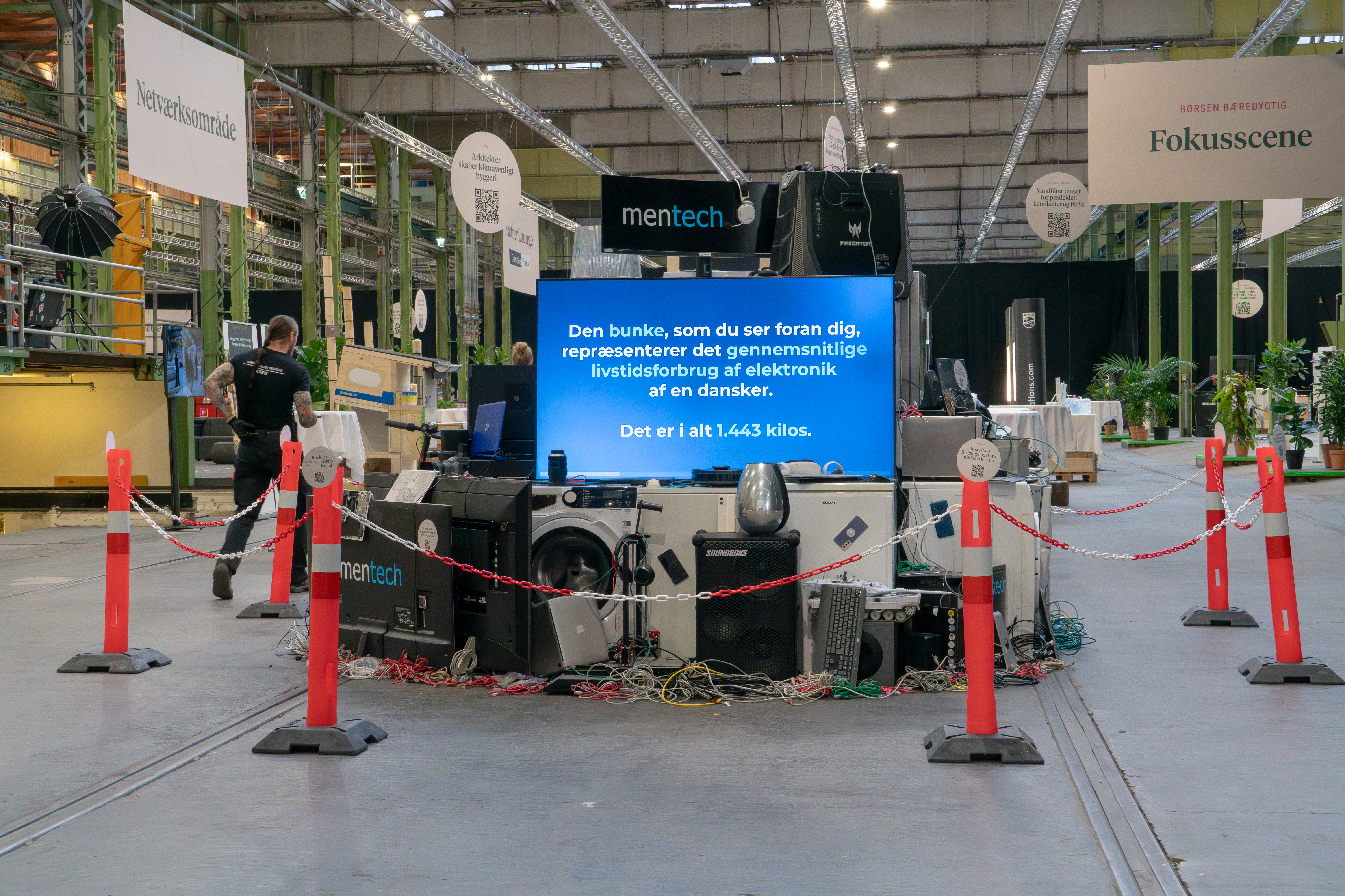 Fjellet av elektronisk avfall, konstruert av kjøleskap, datamaskiner, telefoner og ulike andre forbrukerelektronikk, endte opp med å veie 1 443 kg, tilsvarende en danskers livstidsforbruk av elektronisk avfall. Mentechs utstilling satte tankene i gang hos deltakerne på årets Børsens Bærekraftige Summit, og det var en utstilling der deltakerne stoppet opp, kikket, tok bilder og laget videoer.