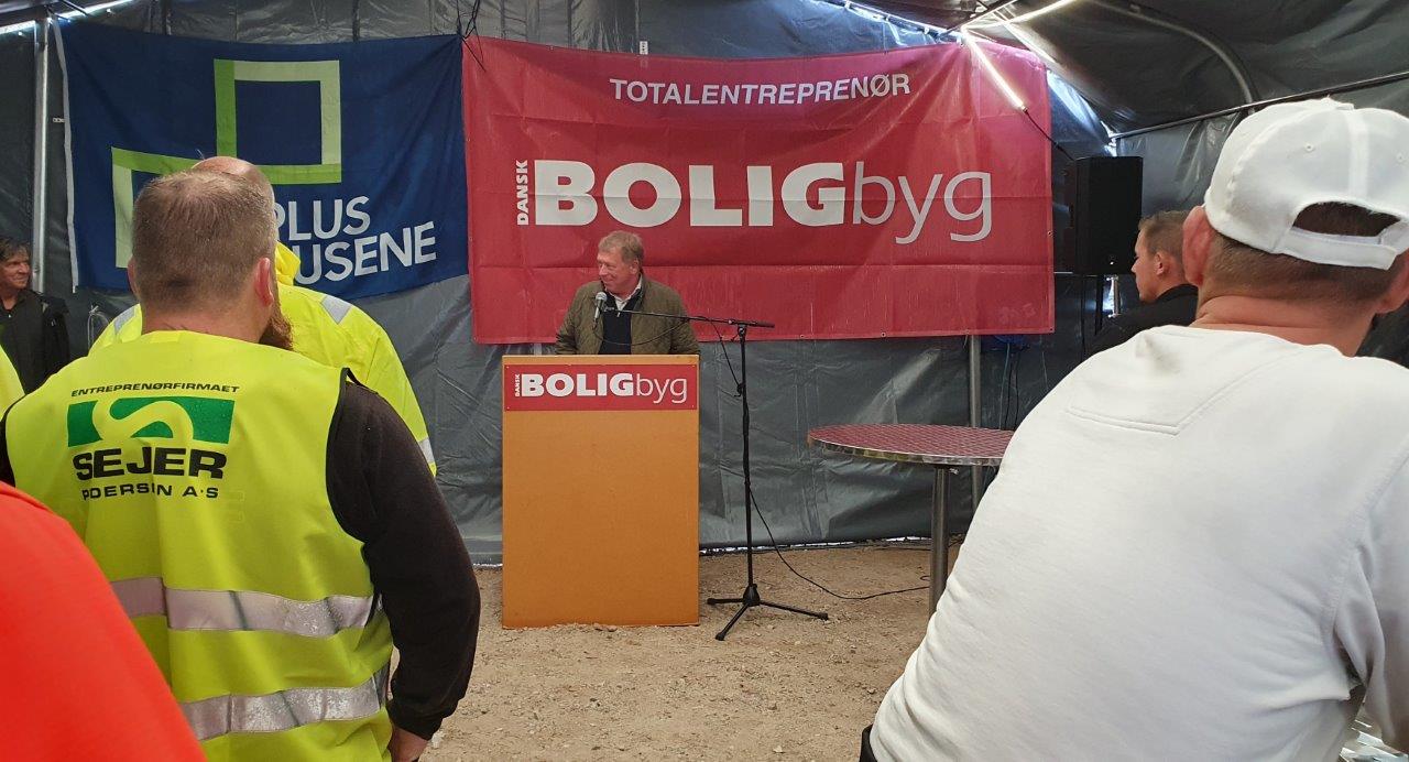 ”Der er ingen tvivl om, at samarbejdet i store byggeprojekter som dette forløber langt bedre og mere smidigt, når man kender hinanden og har en tillidsfuld og åben dialog. Og vi kender jo hinanden rigtig godt efter at have bygget Plushusene i Lisbjerg ved Aarhus sammen. Jeg ved, at det er en stor fornøjelse for vores projekt- og byggeledere at arbejde sammen med jer fra Plushusene – inklusive det samlede team af dygtige rådgivere og flittige håndværkere.”
