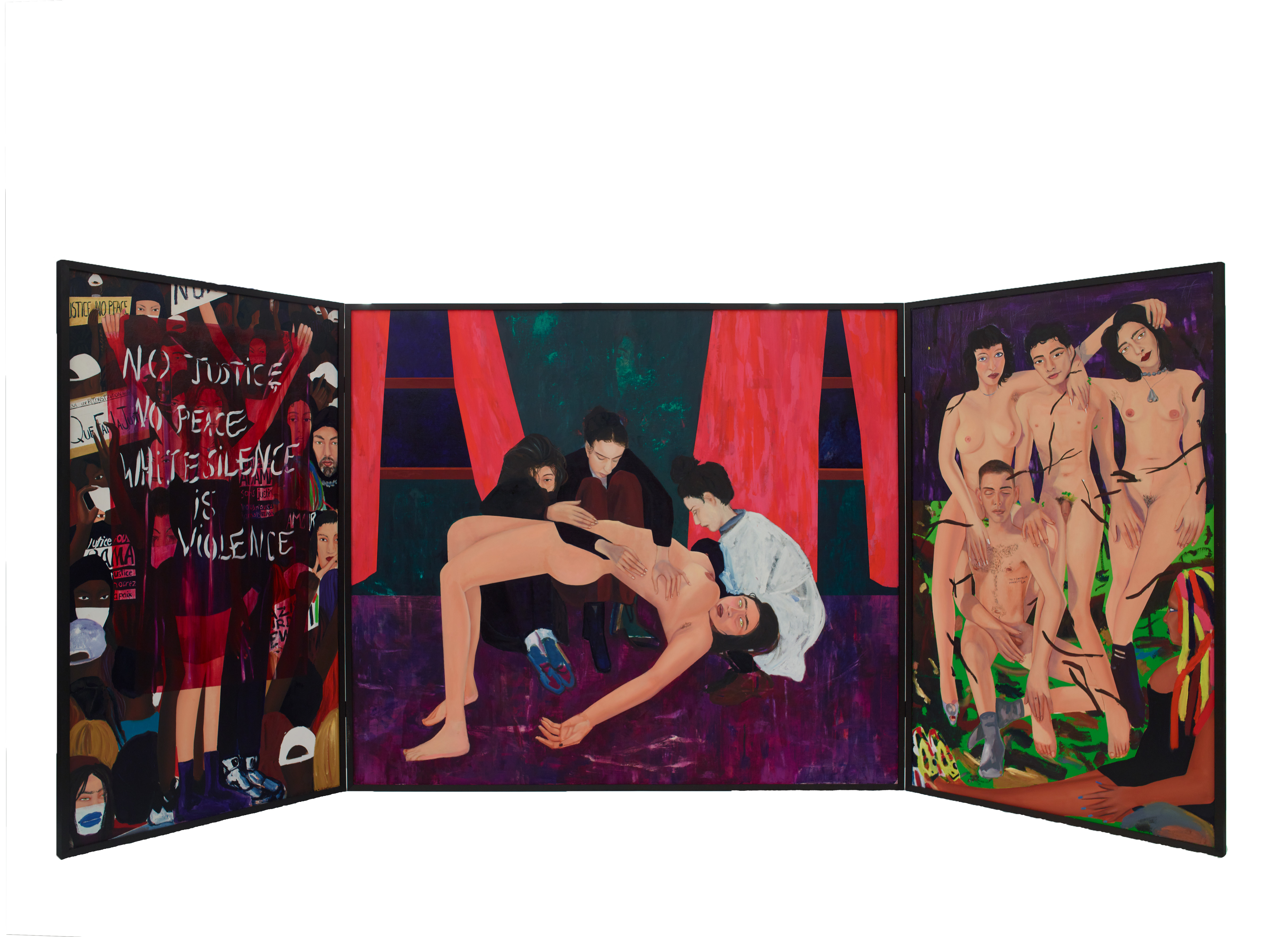 Apolonia Sokols malerier taler direkte ind i vores tid og samfundsdebat, og samtidig går de hånd i hånd med kunstens brogede historie. Hun maler med olie på lærred, en traditionel kunstnerisk disciplin, som hun tager med ind i nutidens flygtige billedverden. Hun knytter bånd til fortidens kunstnere – især kvindelige – der også malede i protest mod overgreb, ulighed og fordomme.