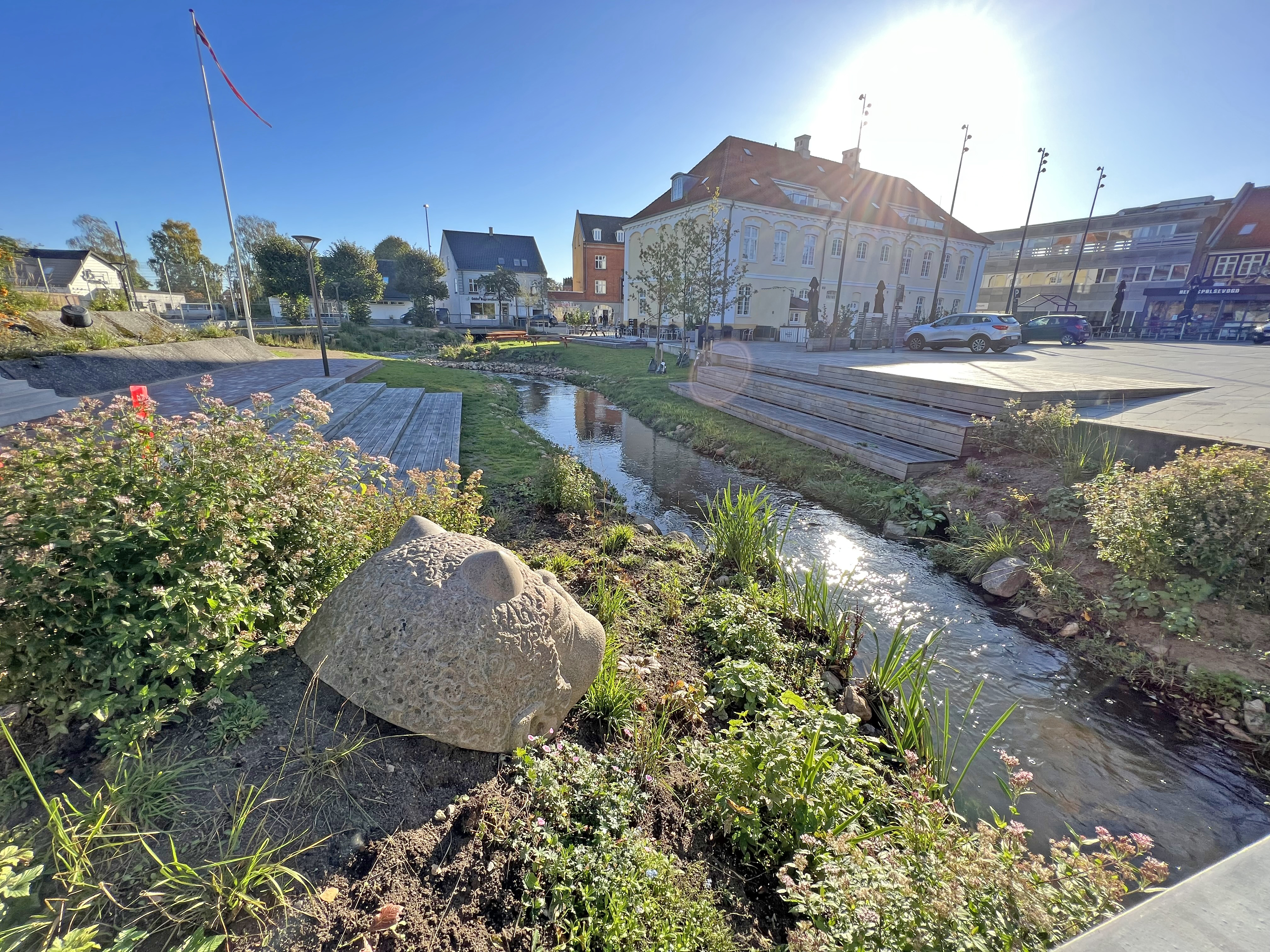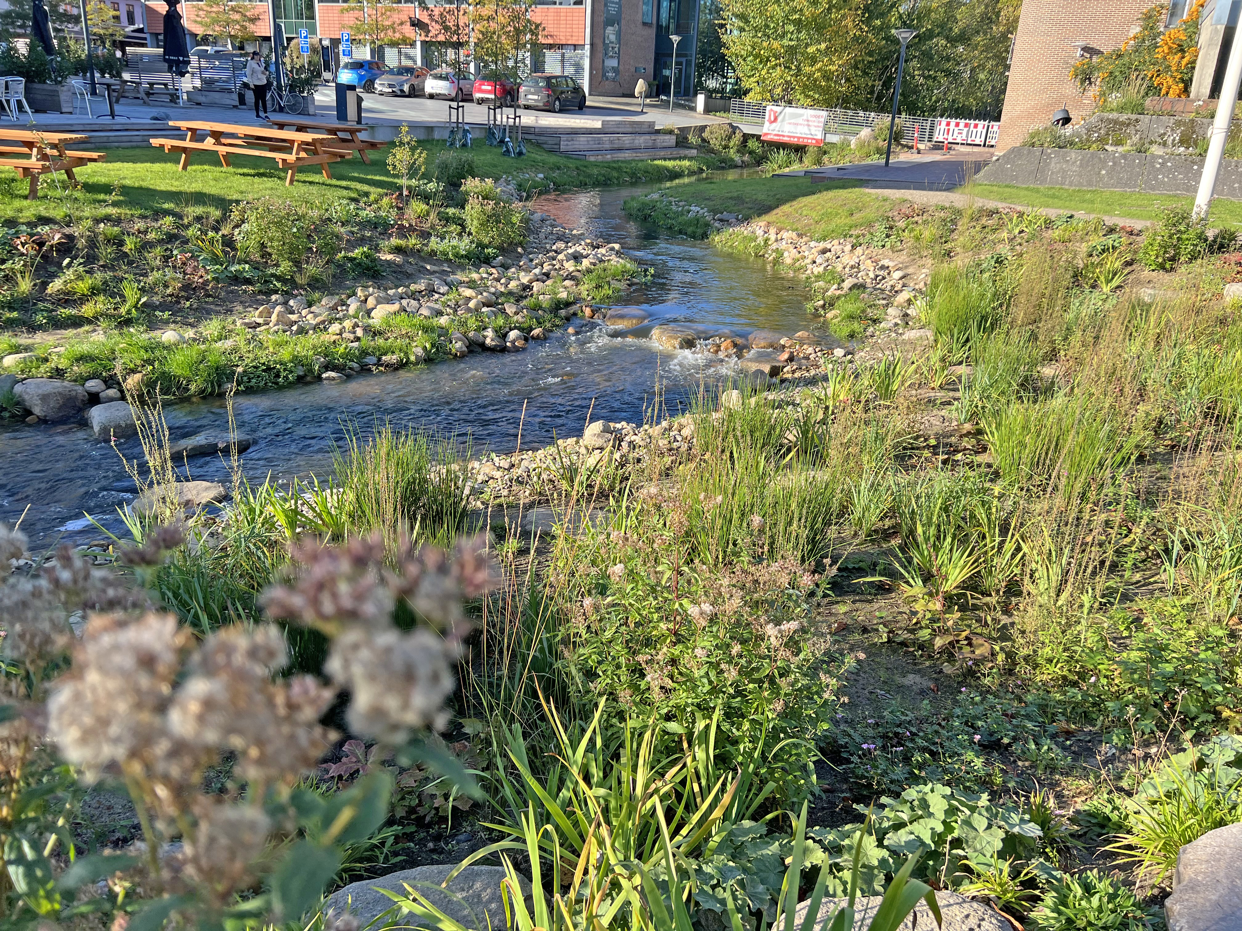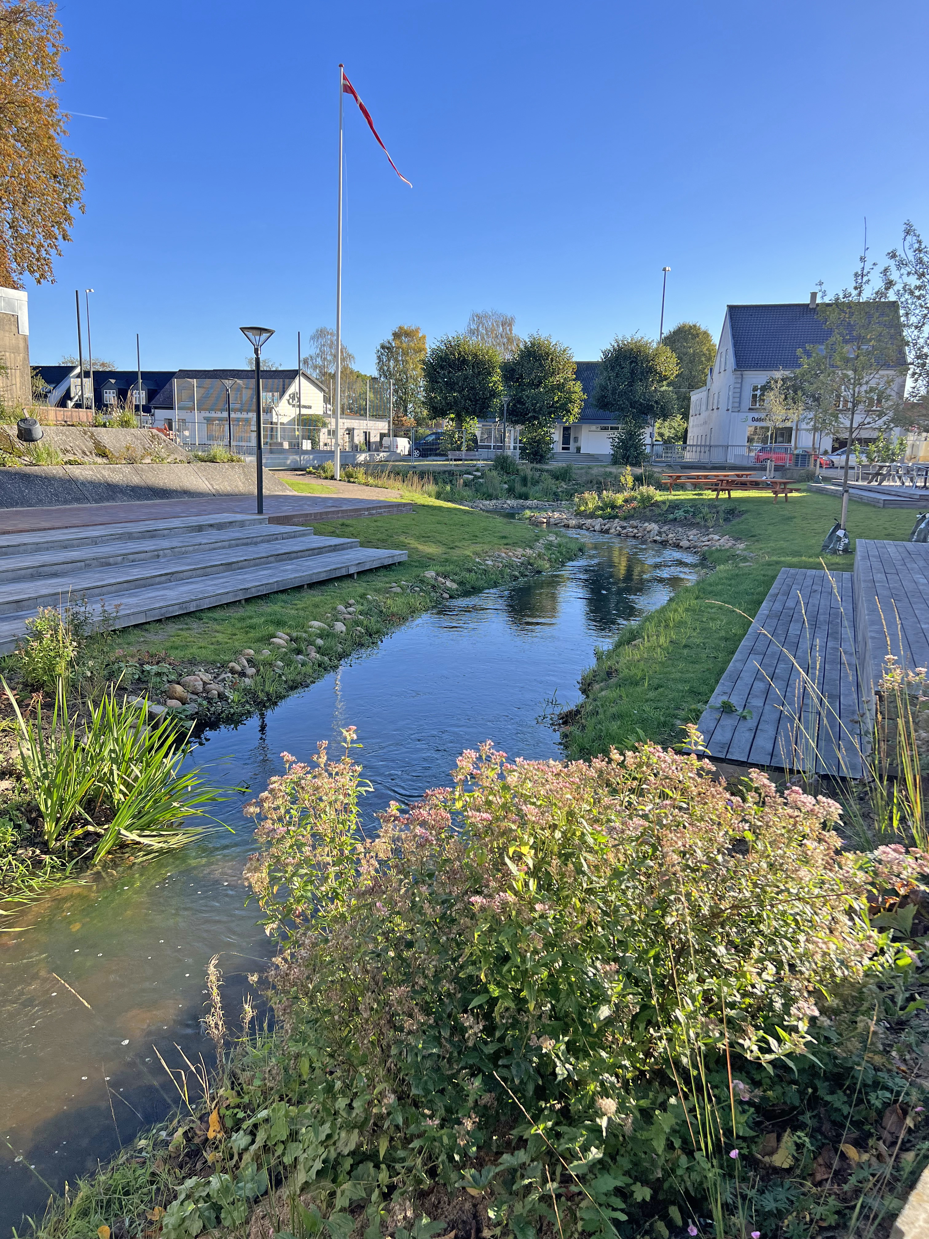”Tidligere var det jo bare å og grå belægning, og nu tager området sig helt anderledes ud. Vandløbet kommer mere til sin ret, og det inviterer til ophold. Jeg synes, det er rigtig fint lavet. Jeg er spændt på, hvordan det kommer til at blive brugt, men det ser godt ud,” siger han.