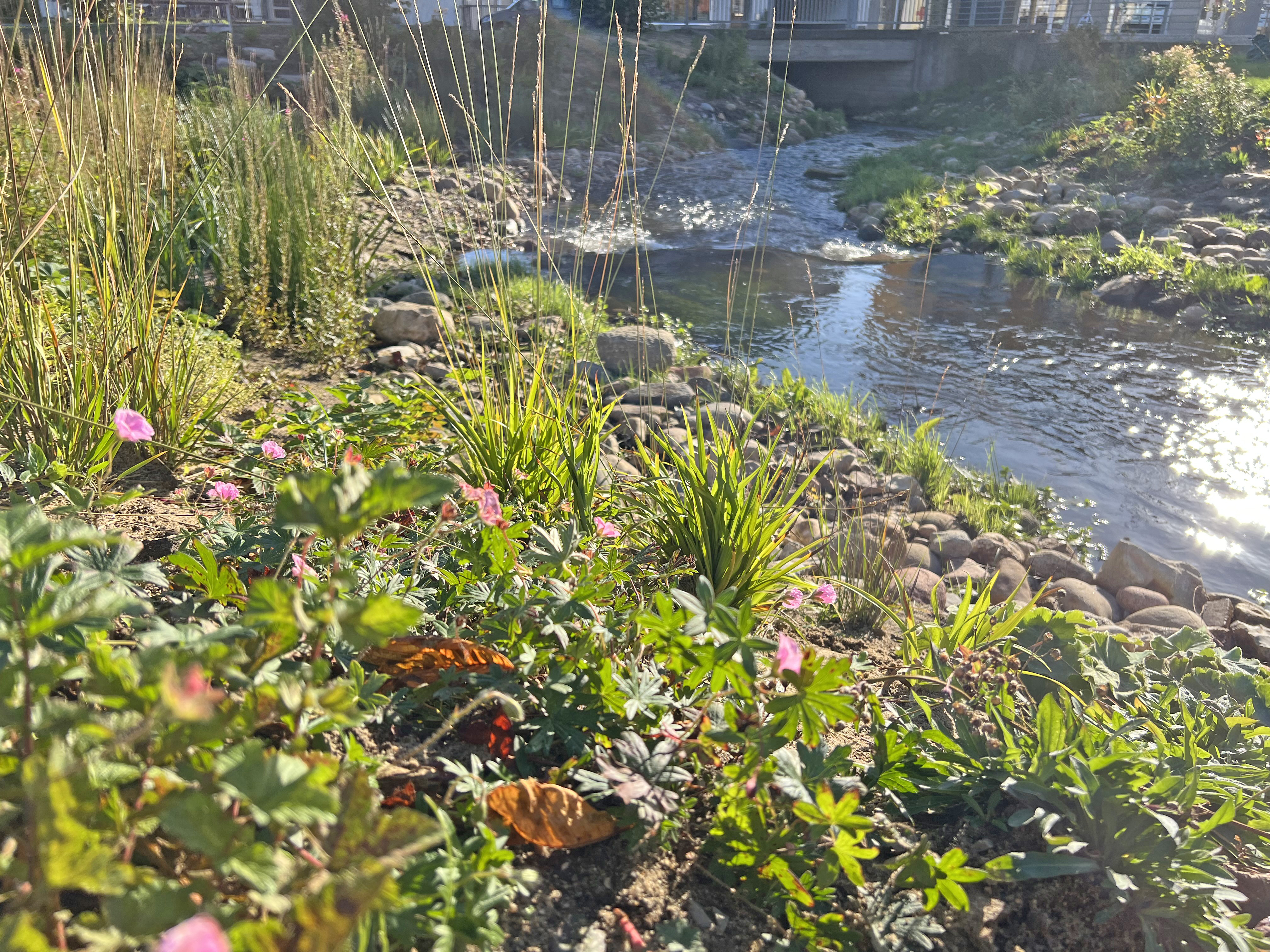 ”Vi har genslynget et stykke af åen og udlagt gydegrus, så den i højere grad kan trække fisk til. Der er regnvandsbede til nedsivning af regn- og overfladevand, der både kan håndtere det typiske regnvejr og de større hændelser. Der er enggræsarealer og blomstereng for at styrke biodiversitet, og så er der selvfølgelig en masse områder til leg og ophold med terrasser, borde og bænke. Derudover er der arbejdet med genanvendelse,” fortæller projektleder Henrik Vittrup og uddyber: