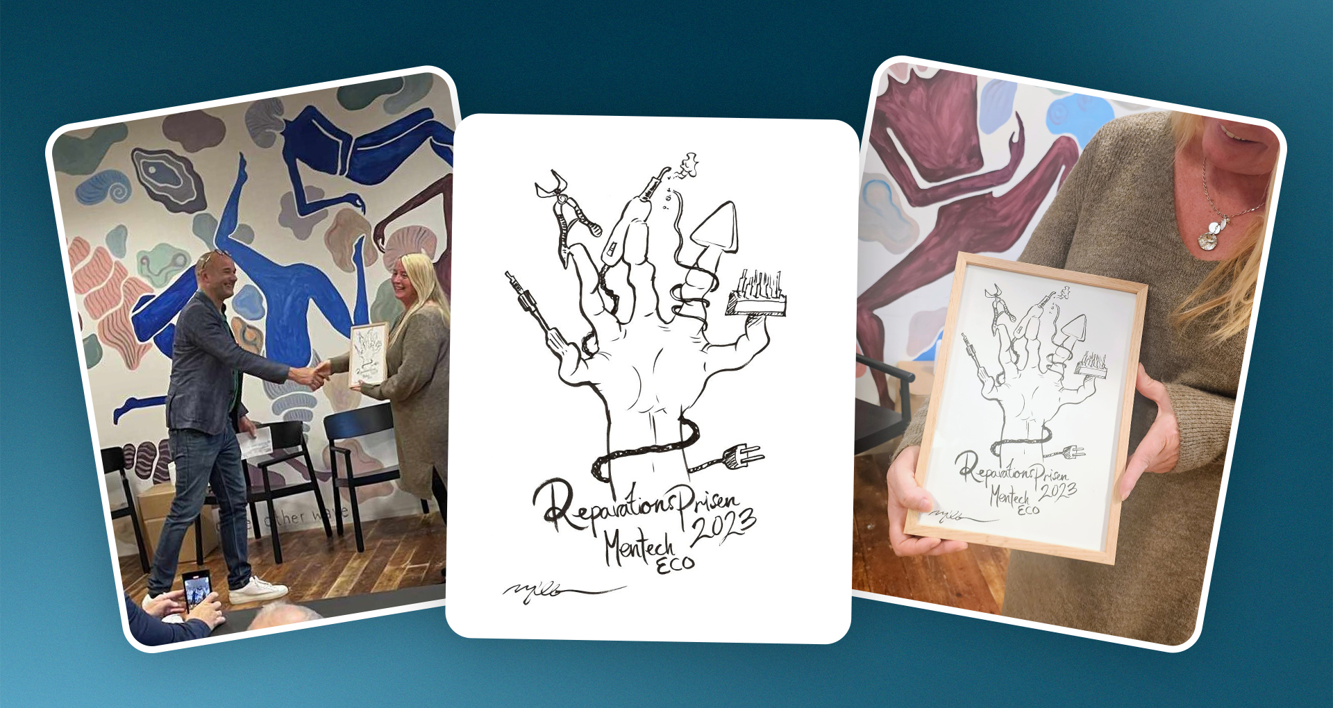 Ved årets tildeling av Reparasjonsprisen 2023 var Mentechs administrerende direktør, Charlotte Mensing, til stede for å motta denne flotte prisen. Mentech ECO uttrykker stor takknemlighet for å ha mottatt prisen, og er stolte av å bli anerkjent for sitt store arbeid med å fremme reparasjon fremfor å kaste elektronikk i søpla. Mentech har gjort dette til en av sine viktigste saker siden selskapet ble grunnlagt tilbake i 2009. Mentech ECO er glade for å kunne sette fokus på sitt arbeid i kampen mot elektronikkavfall.