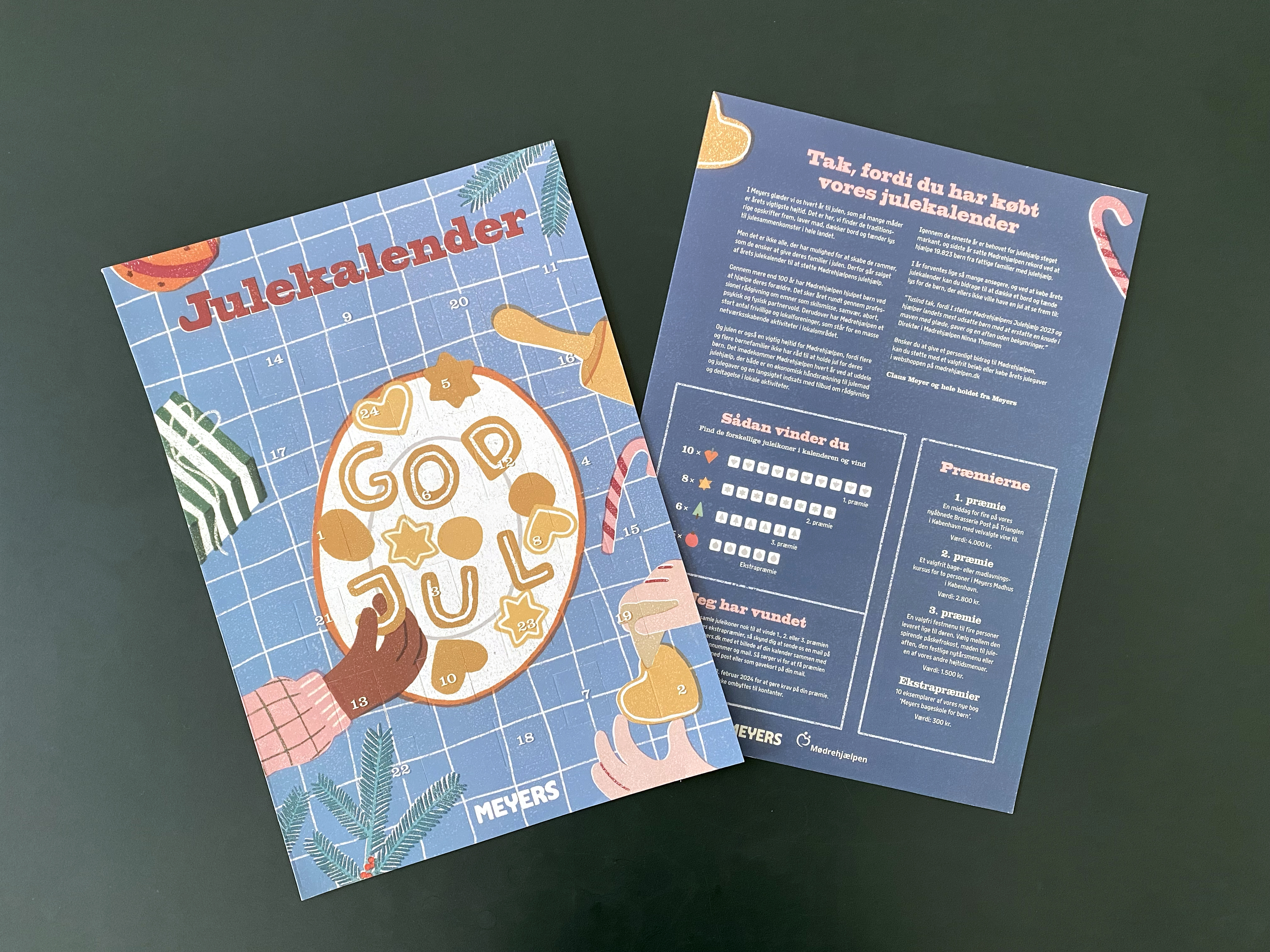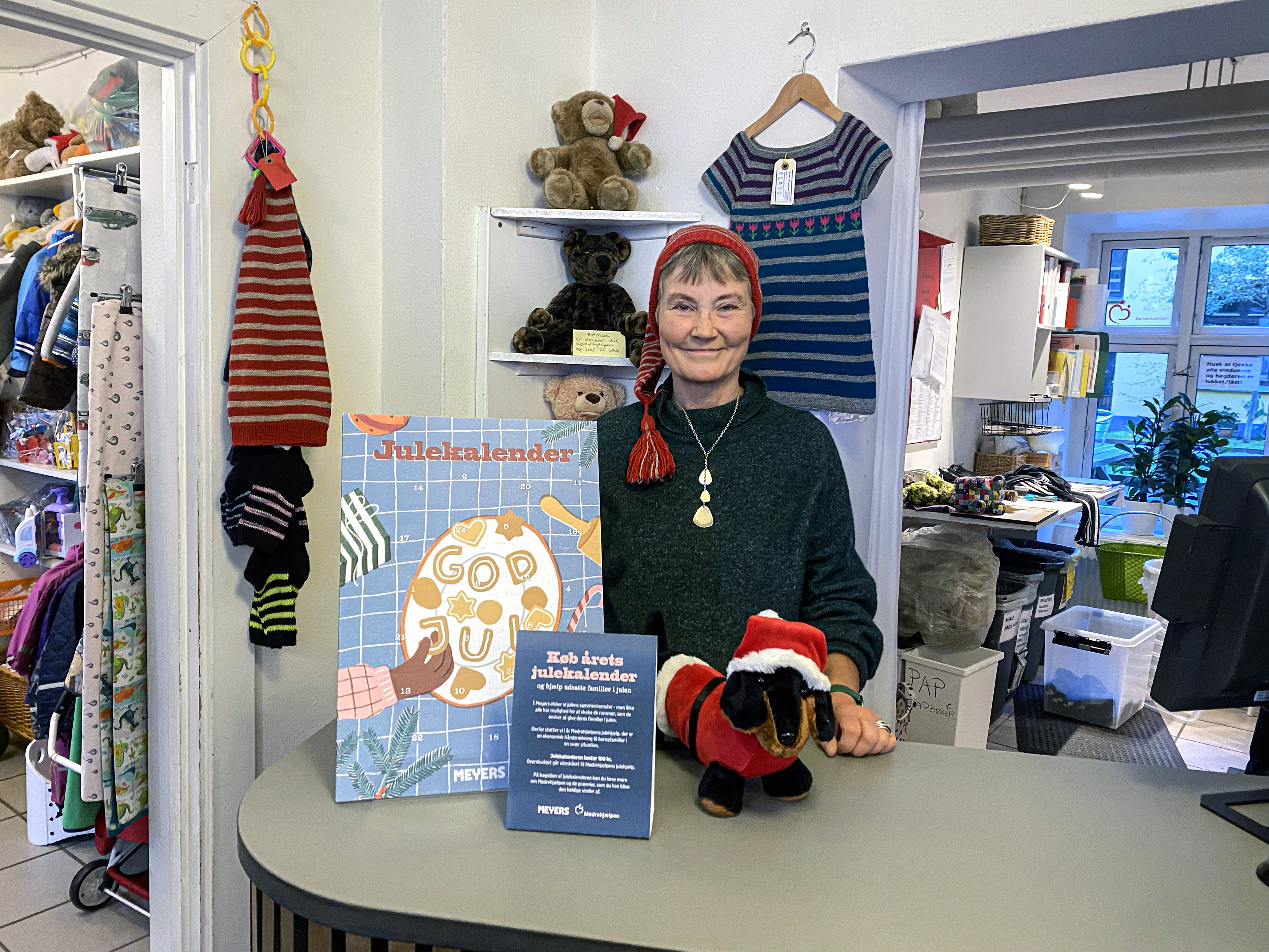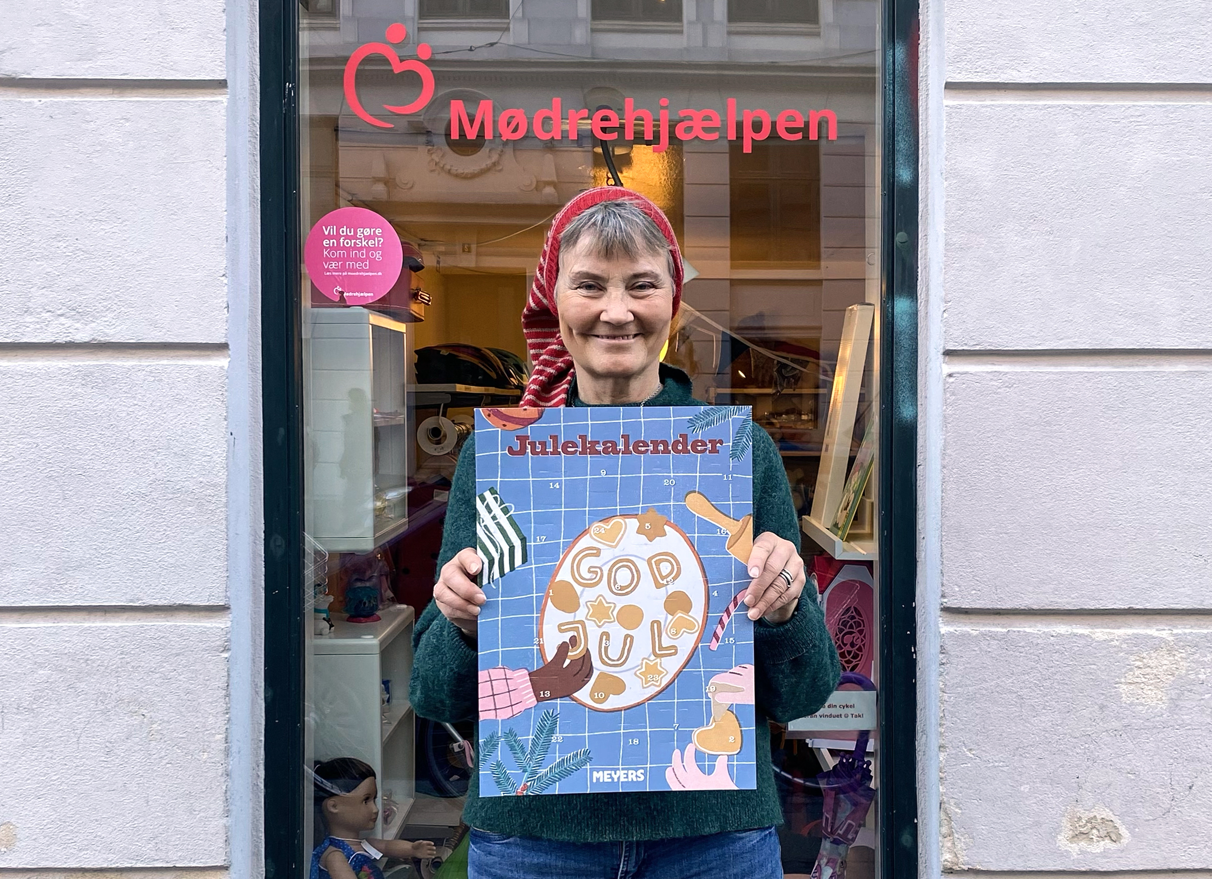 - Julekalenderen koster 100 kr. og kan købes i Mødrehjælpens butikker i hele Danmark fra 7. november og så længe lager haves. Kalenderen er en klassisk lågekalender, der gemmer på en række præmier fra Meyers, bl.a. gavekort til restauranter, madkurser, kogebøger m.m. Alt overskud fra salget af julekalenderen går til den lokalforening, som sælger kalenderen. Se alle lokationer her: https://moedrehjaelpen.dk/forside/kontakt/butikker/