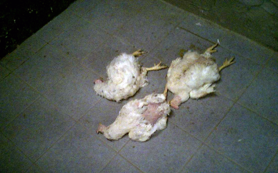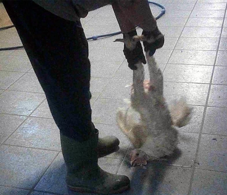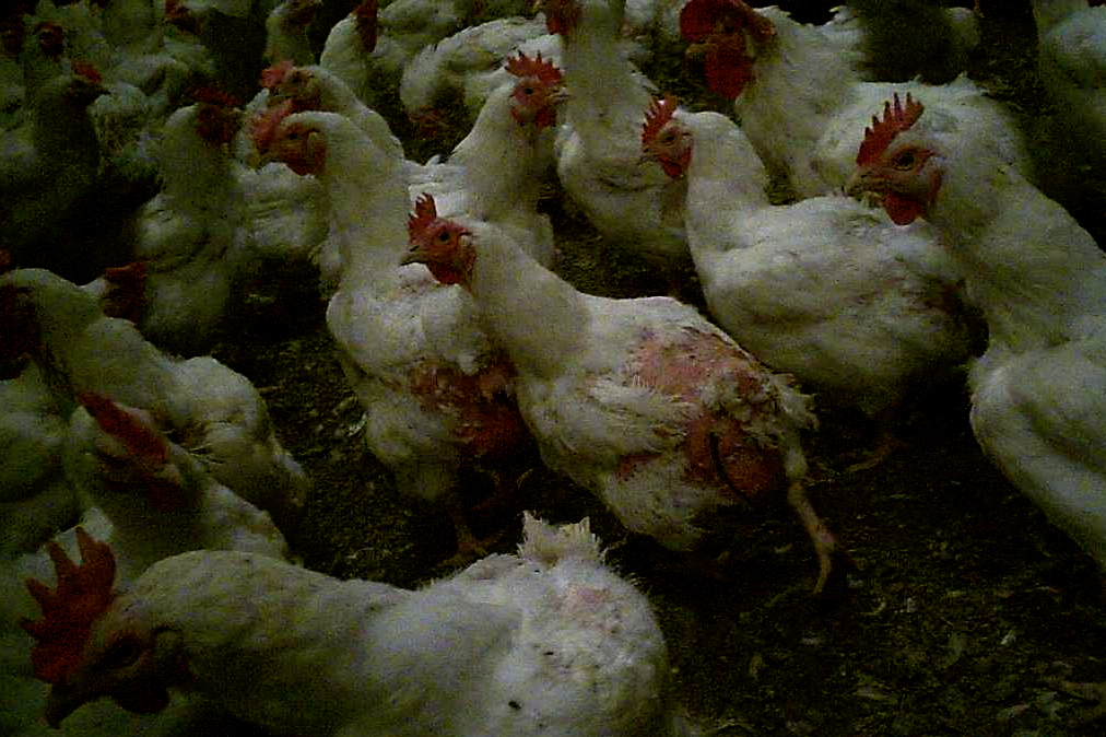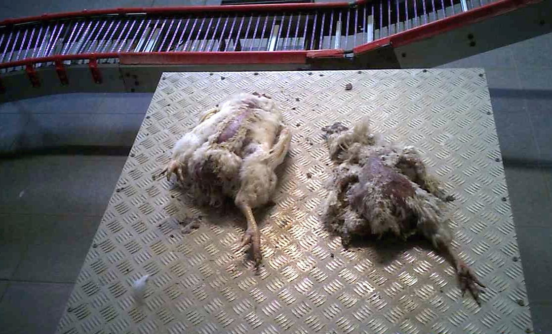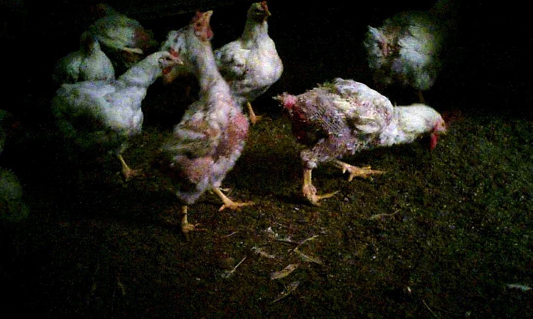 Kyllingerne er avlet til at nå slagtevægten på 35 dage, men avlsdyrene skal leve i omtrent 400 dage. Derfor sultes de systematisk, da de ellers ville vokse for meget. Det medfører, at dyrene - på grund af stress og frustration - angriber hinanden. De trækker fjerene ud på hinanden, og mange ender næsten nøgne uden beskyttende fjerdragt. I værste fald fører sulten til hakning og kannibalisme. På optagelserne ses, hvordan en høne får trukket sine tarme ud, som spises af de andre høns, mens den stadig er i live.