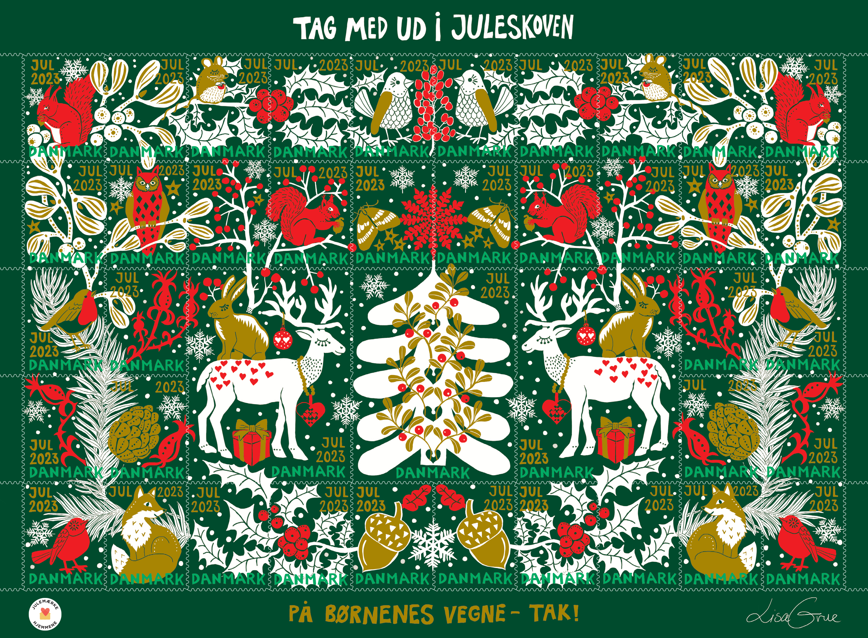 Årets Julemærke blev i dag afsløret af H.K.H. Kronprinsessen sammen med Julemærkekunster Lisa Grue. Det skete til et festligt arrangement på Københavns Rådhus, hvor Julemærket, som har fået titlen ”Tag med ud i juleskoven”, blev præsenteret.