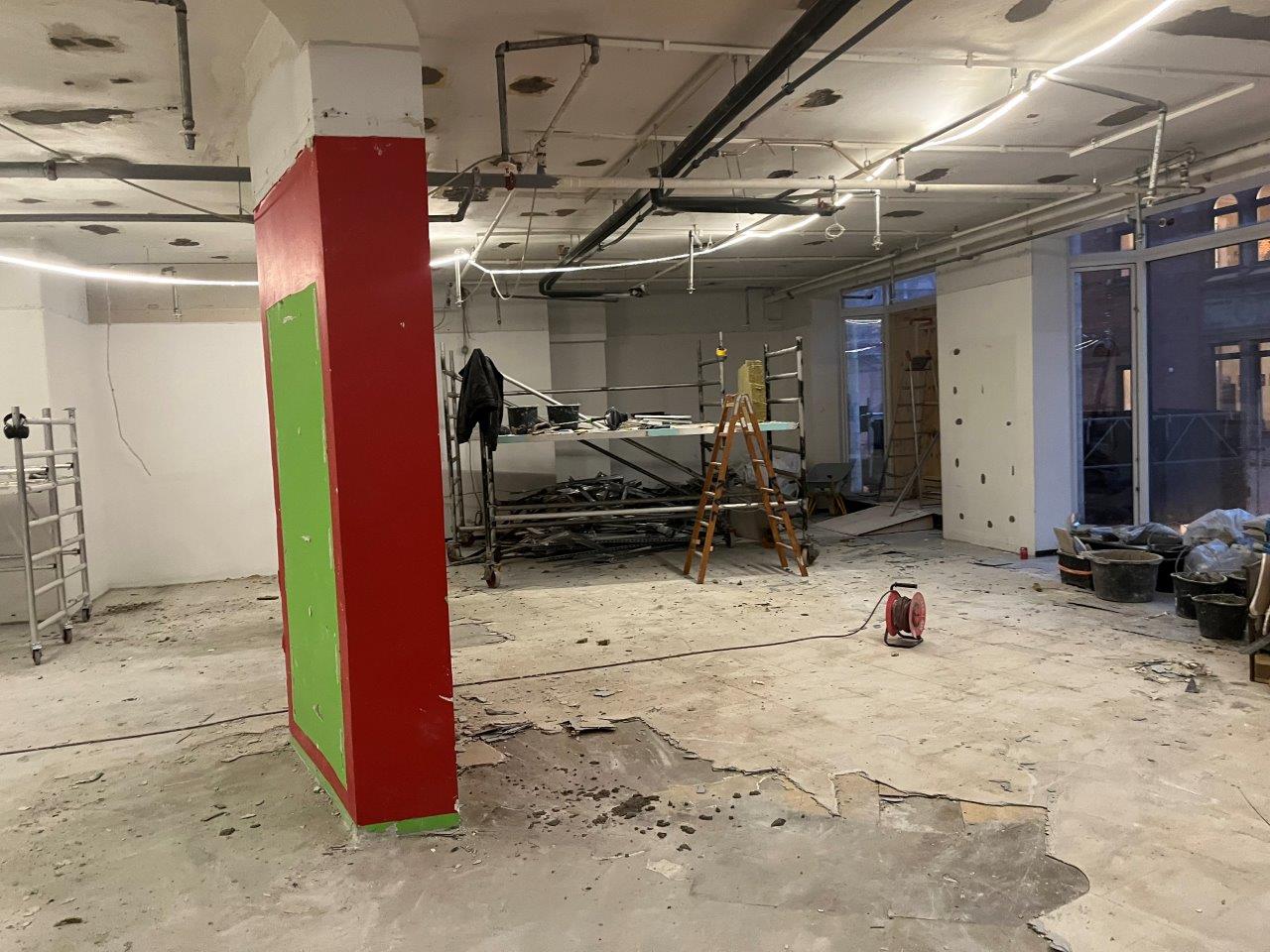 De gamle linoleumsgulve er blevet erstattet med nye flisegulve, og der er blevet renoveret butik, lagerlokaler samt medarbejderfaciliteter som kantine og toiletter. Desuden er ny belysning og ventilation blevet installeret.