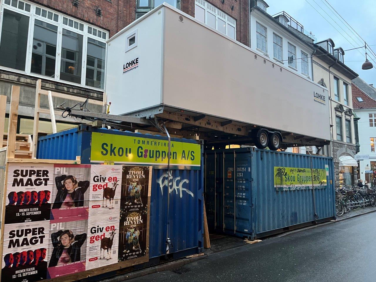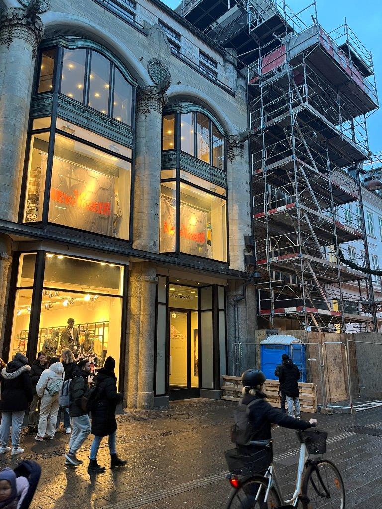 NEW YORKER-butikken er omgivet af andre butikker og beliggende på Københavns travleste gågade, og det har derfor ikke været muligt for Skou Gruppen at have containere og et materialelager tæt på byggeriet: