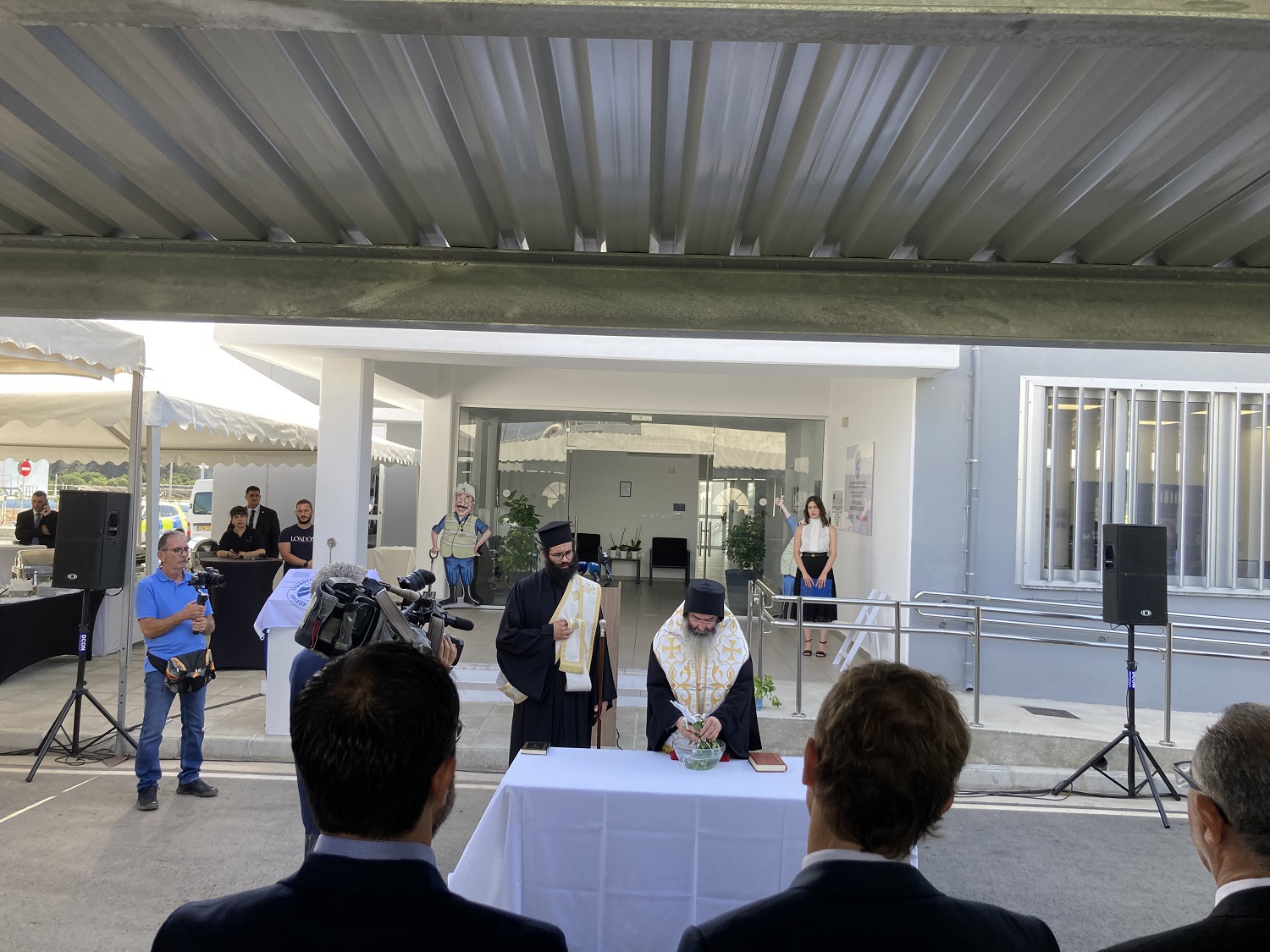 Biskoppen af Amathus velsigner anlægget efter cypriotisk tradition.