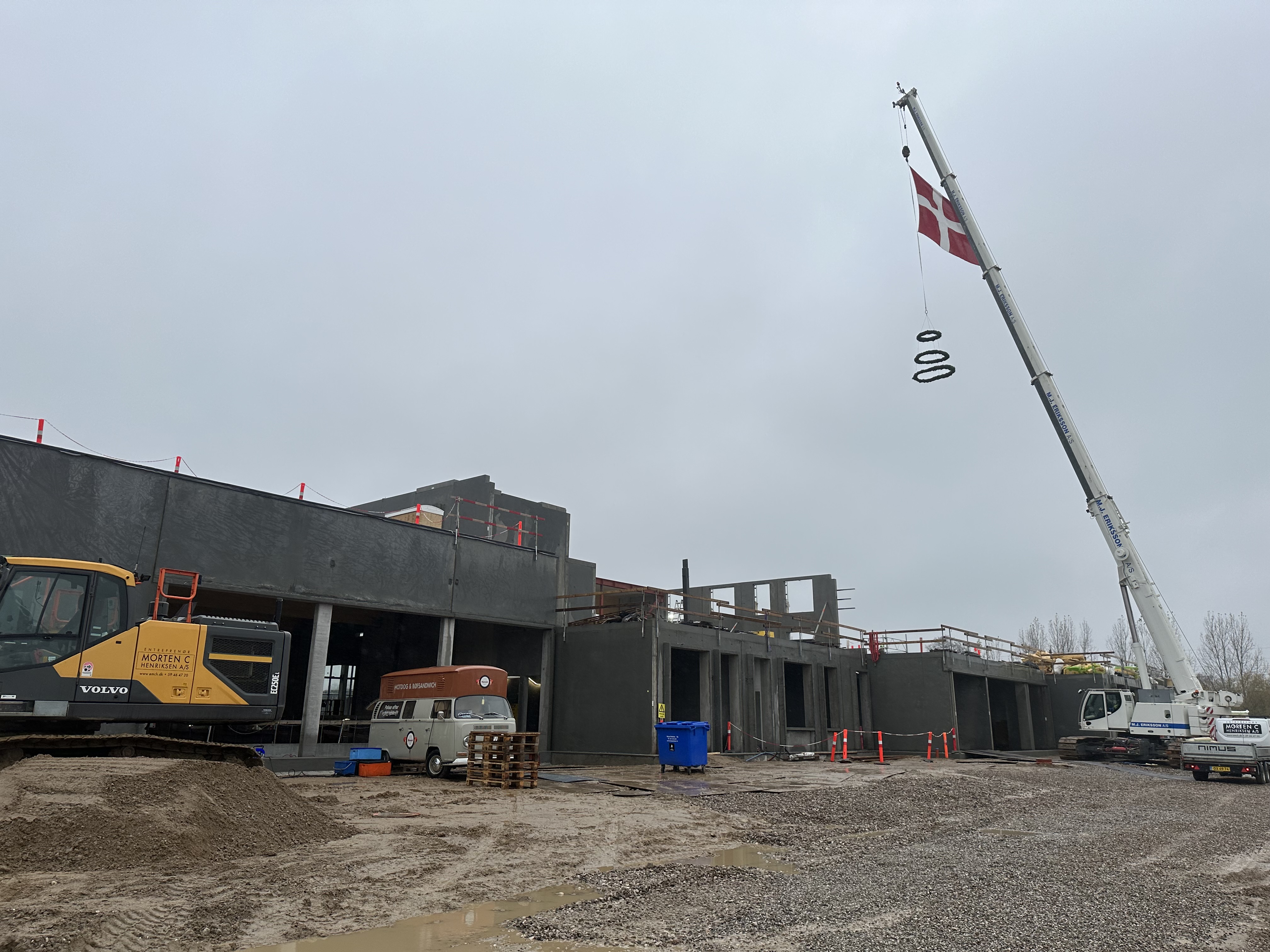 Det er Morten C. Henriksen A/S, der er totalentreprenør på byggeriet. De har haft maskinerne på pladsen i mere end et år.