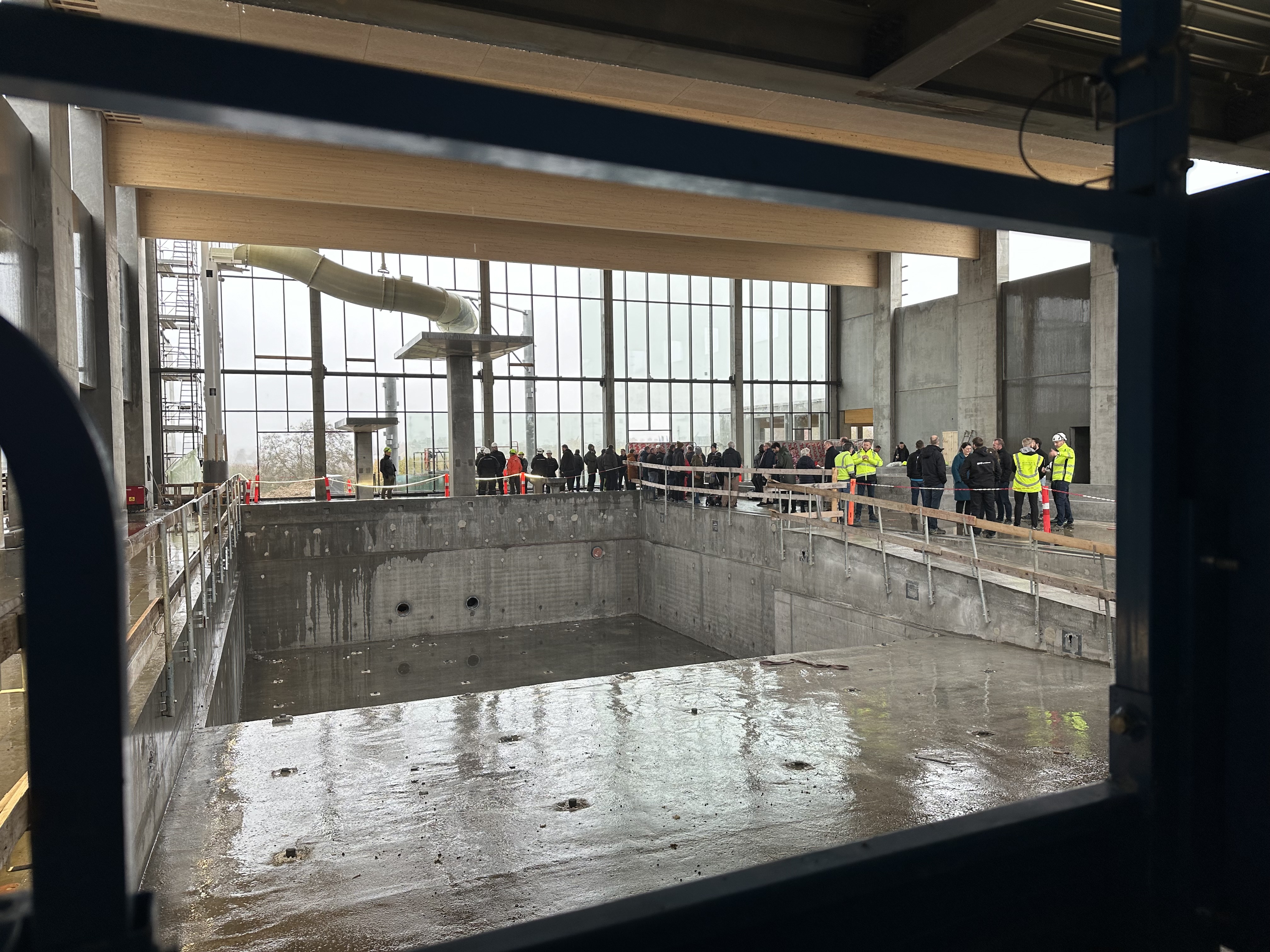 Der er højt til loftet i Næstveds nye svømmehal. Ikke mindst i rummet med morskabsbassiner og motionsbassin, hvor håndværkerne i dag blev fejret til rejsegildet. Byggeriet skrider planmæssigt frem, og den nye svømmehal står til at åbne om godt og vel et år.