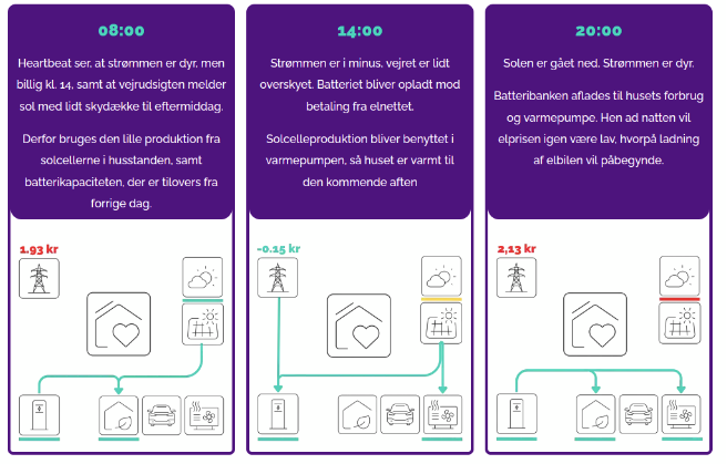 Heartbeat fra den danske solcellevirksomhed Viasol A/S, en del af 1KOMMA5°-koncernen, er en smart energiløsning, der er tilkoblet energisystemet i hjemmet. Løsningen trækker desuden data fra databaser såsom elbørsen og vejrudsigten, hvilket gør systemet i stand til at placere dit elforbrug på det mest hensigtsmæssige tidspunkt i forhold til besparelser.