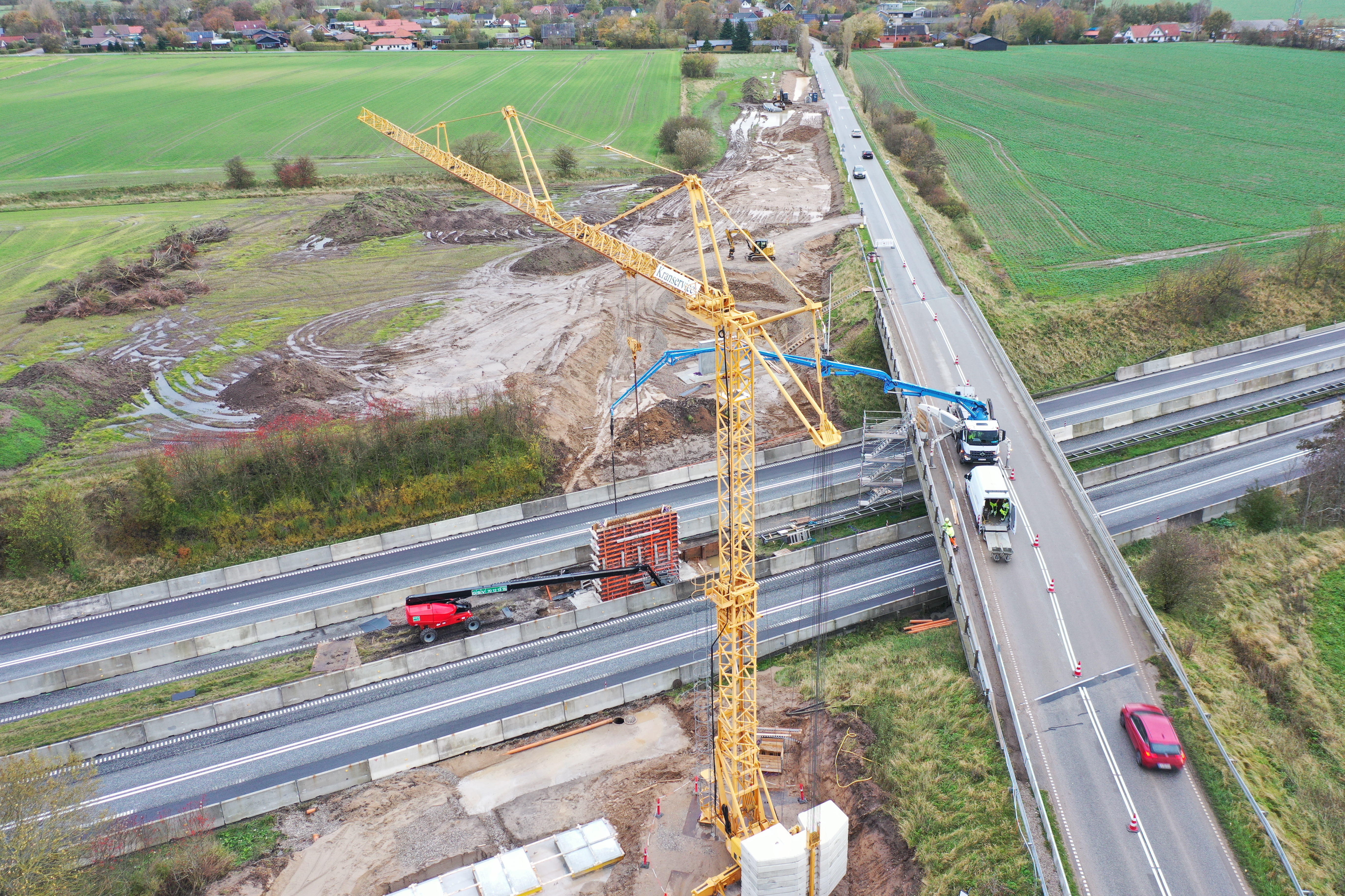 Vejdirektoratet fjernede i sidste måned en 980 tons tung bro over E45 Østjyske Motorvej syd for Skanderborg. Arbejdet med at bygge en ny bro med plads til flere spor under sig pågår nu – sammen med flere andre broarbejder langs motorvejen.