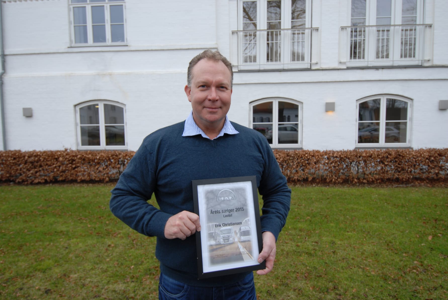 Ved en samlet vurdering af salgsindsatsen i 2015, blev salgskonsulent Erik Christiansen, MAN Esbjerg, kåret som årets sælger. På trods af at Erik har arbejdet med salg af lastbiler hos MAN i mere end 25 år, så er det dejligt at se, at de mange års erfaring ikke har været en sovepude, men tværtimod er blevet brugt til at arbejde med at sælge MAN til endnu flere nye kunder, som ikke tidligere har kørt MAN. Dette var et væsentligt kriterie i kampen om at blive årets sælger.