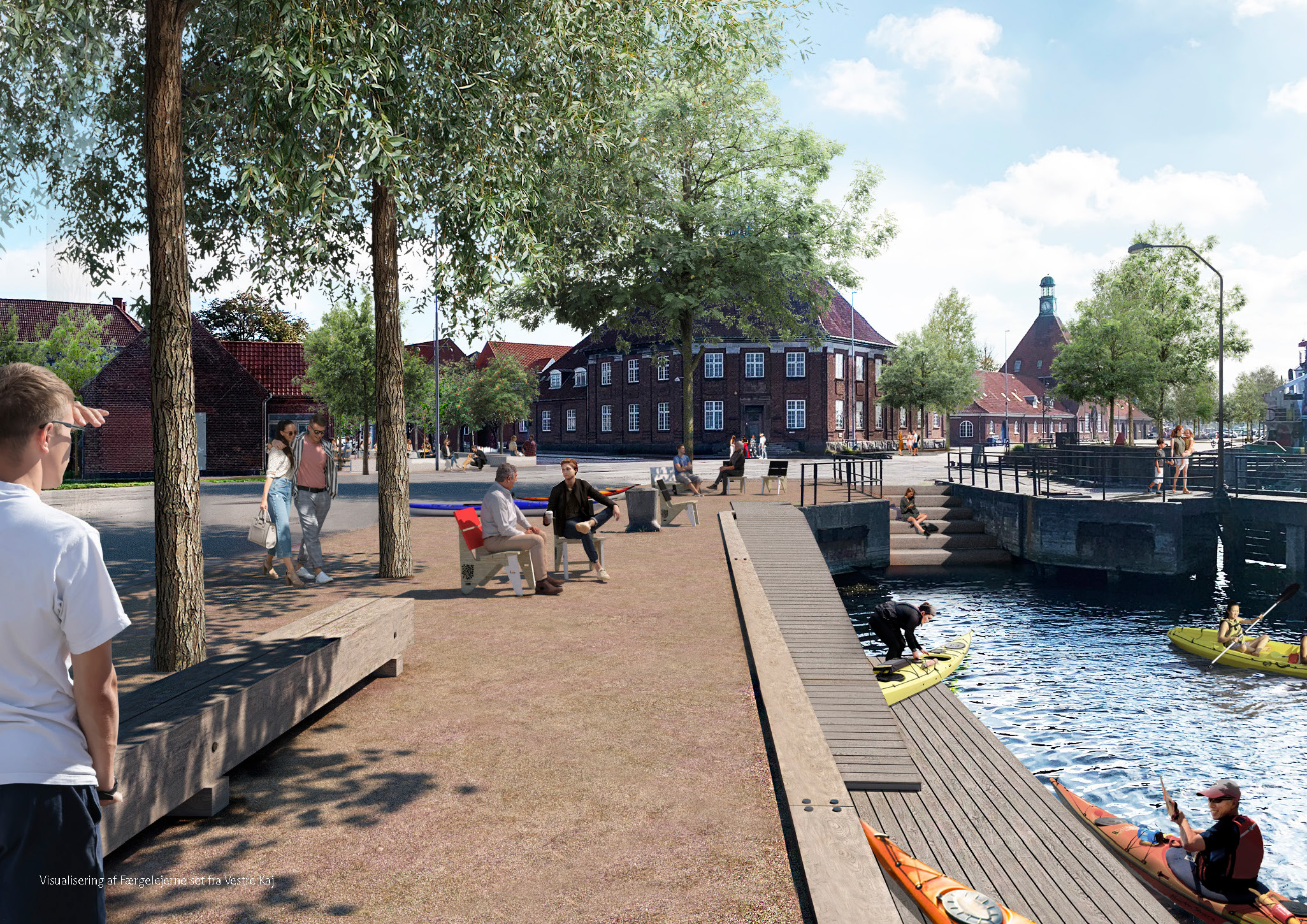 Det ene består i at transformere de kulturhistoriske færgelejer i Nakskov Havn til vandaktiviteter og ophold, samt til knudepunkt for vandforbindelse til Nakskov Fjord.