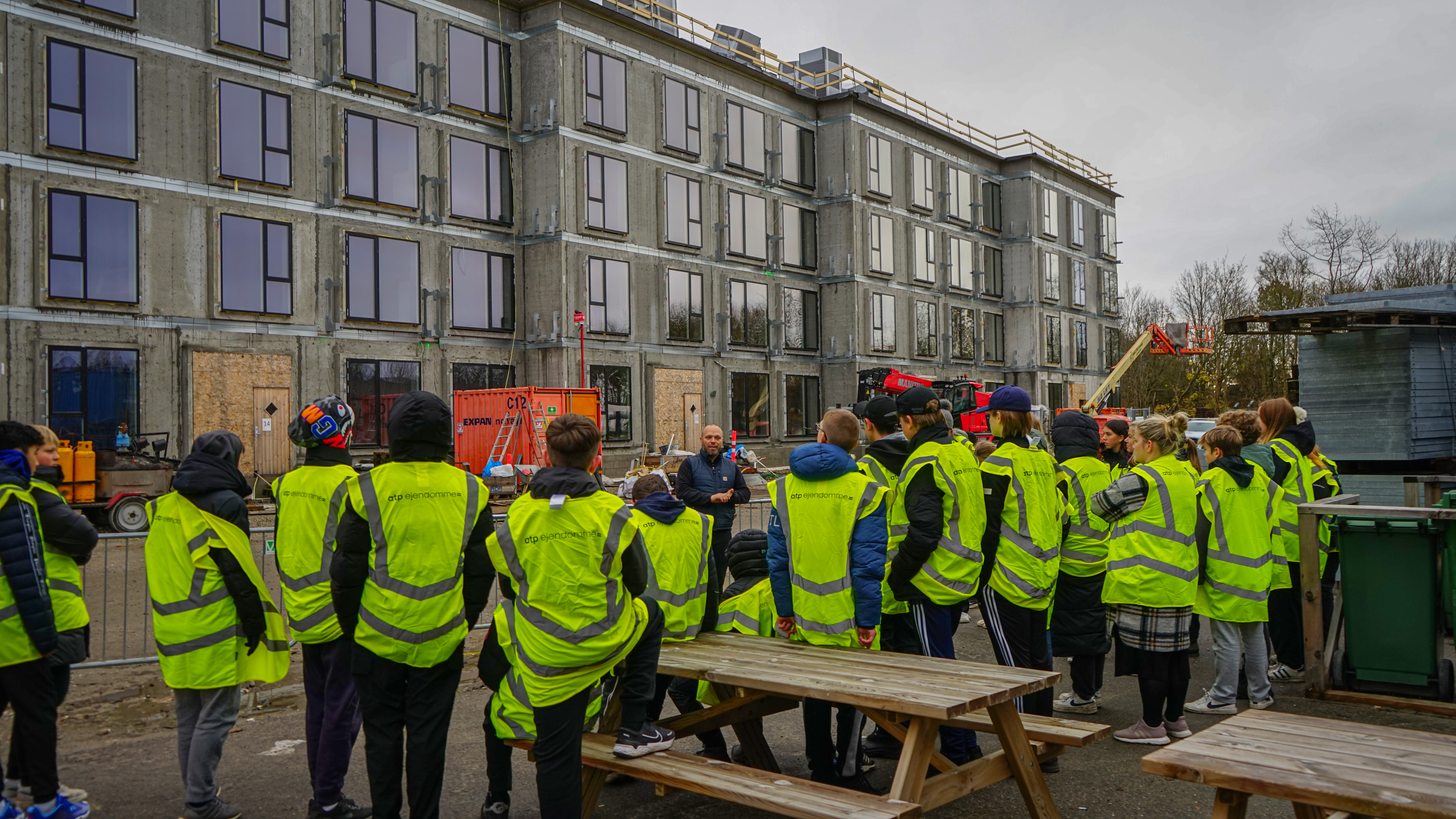 Kan skoleelever i 7. klasse hjælpe en stor dansk bygherre med at bygge fremtidens boliger? Og kan en af Danmarks største ejendomsejere omvendt gøre skoleelever klogere på erhvervsuddannelser? Det mener ATP Ejendomme, som har inviteret 50 folkeskoleelever fra Skovvangsskolen til en temadag om både nutidens byggeri og fremtidens boliger.