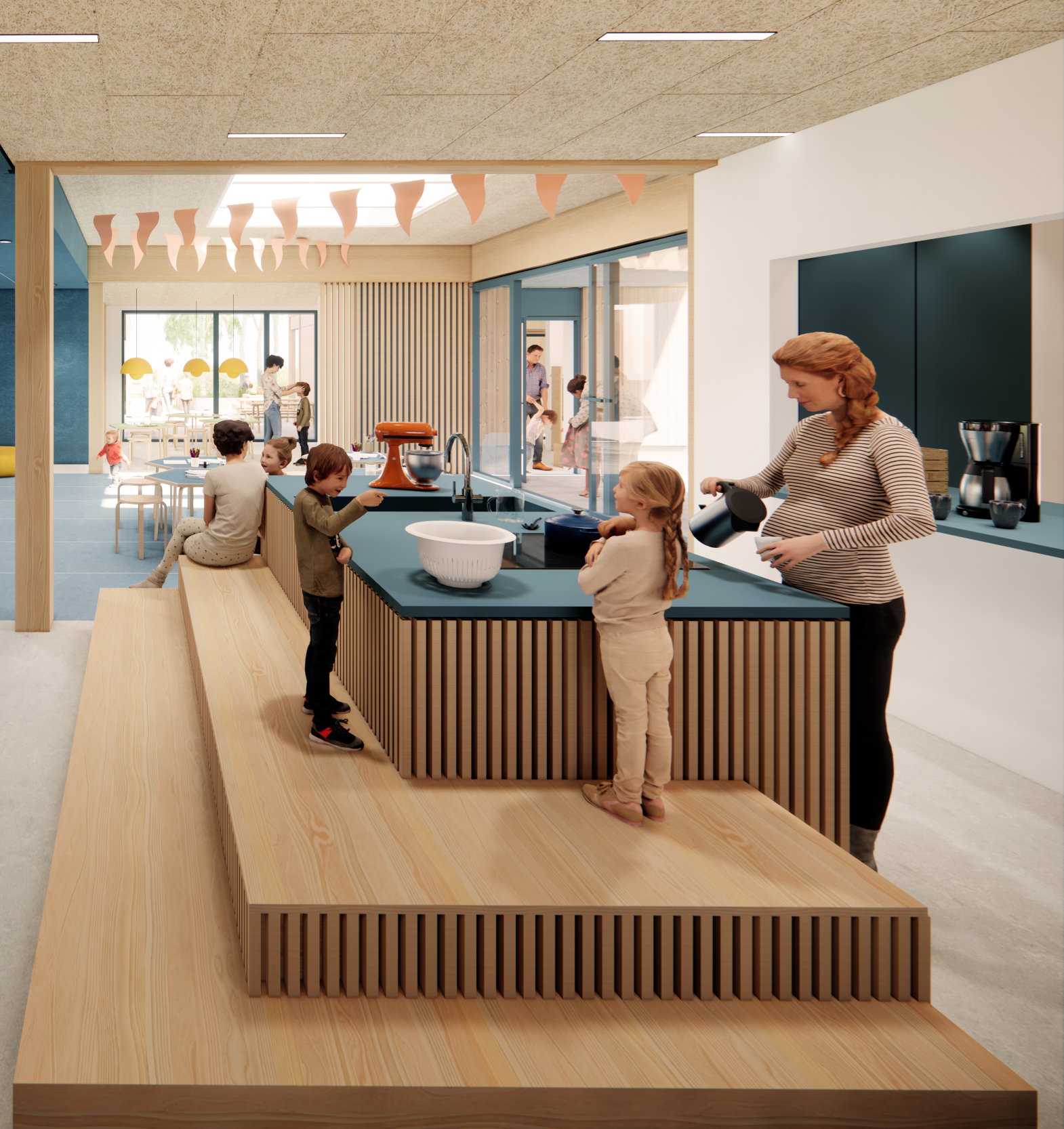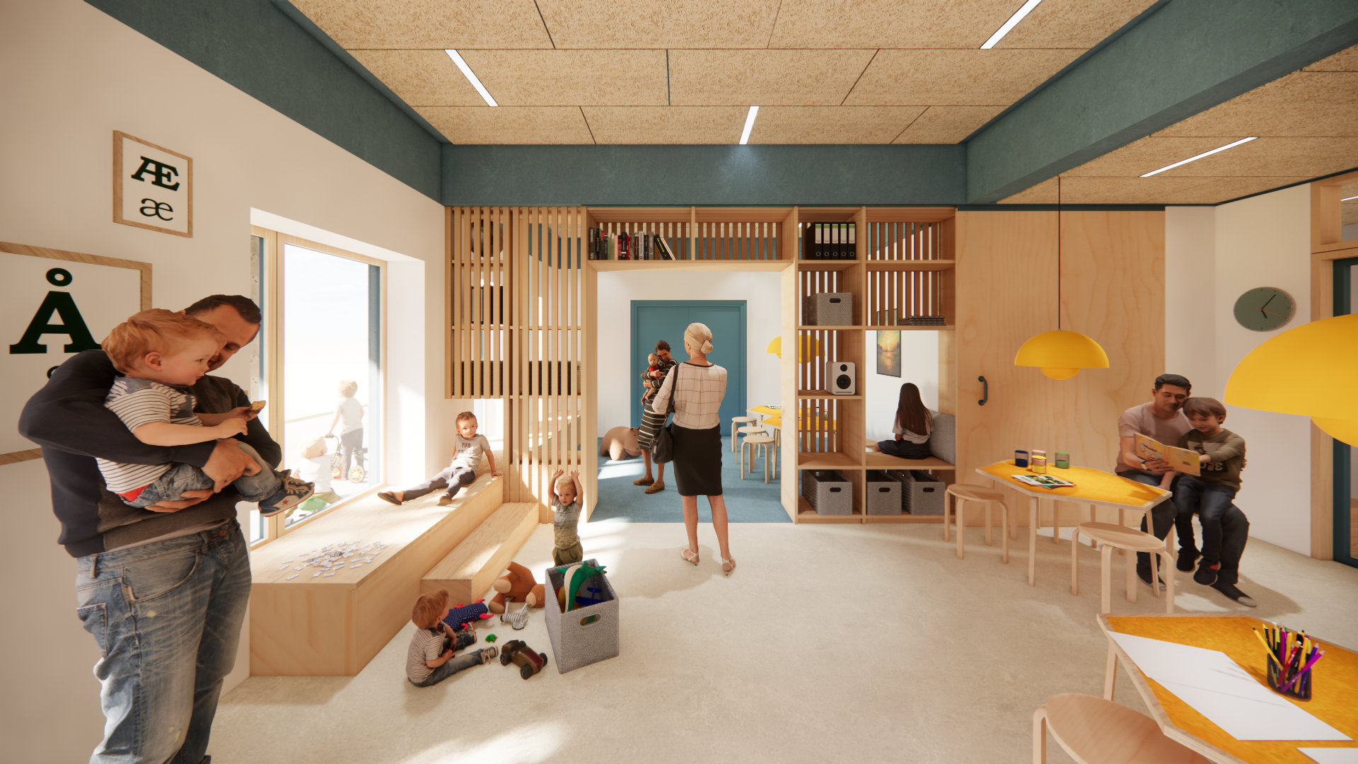 Næstveds nye bydel får en moderne daginstitution med fællesrum, produktionskøkken og motoriksal. Den skal danne rammerne for hverdagen hos 120 børn og 35 medarbejdere.
