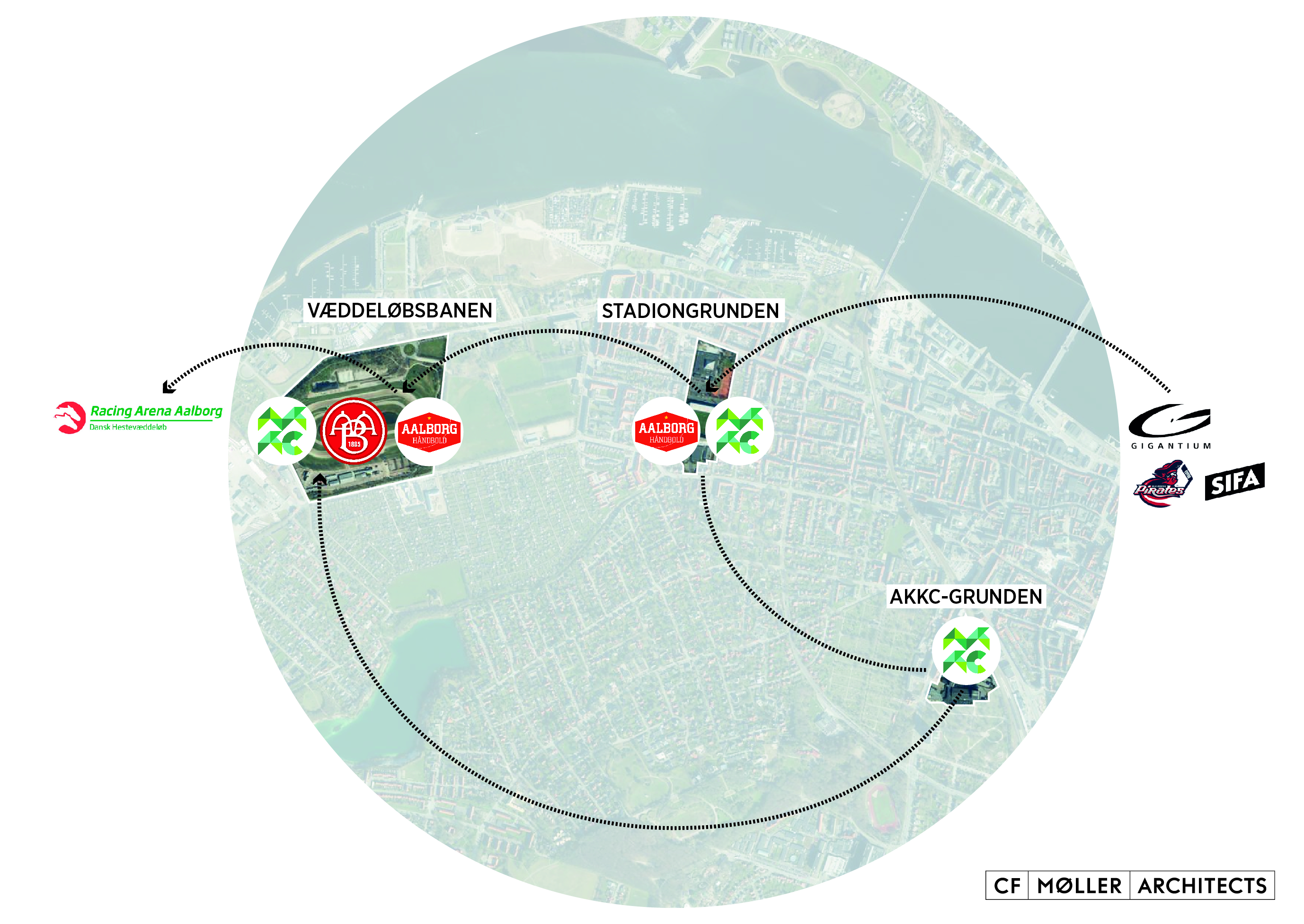 De otte organisationer og virksomheder er ErhvervNorddanmark, AaB, DBU, Aalborg Håndbold, Aalborg Pirates, SIFA, Spar Nord Arena– Aalborg Væddeløbsbane og Aalborg Kongres & Kultur Center, der nu er klar med en sammenhængende vision for fremtidens sports- og kulturliv i Aalborg.