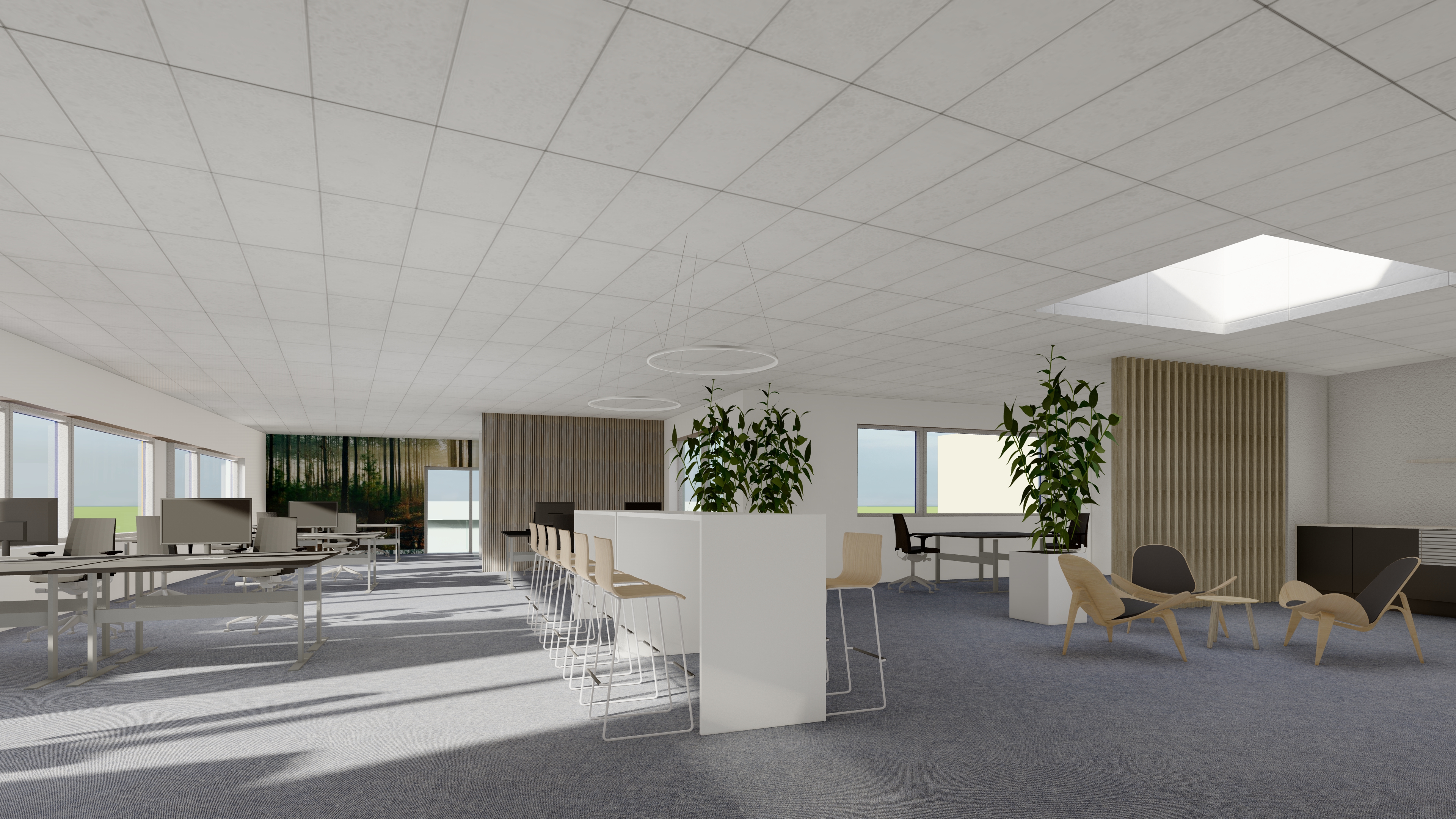 På 1. sal af tilbygningen får DGI Sydvest nye administrative lokaler, hvor 24 medarbejdere fremover skal have deres daglige gang.