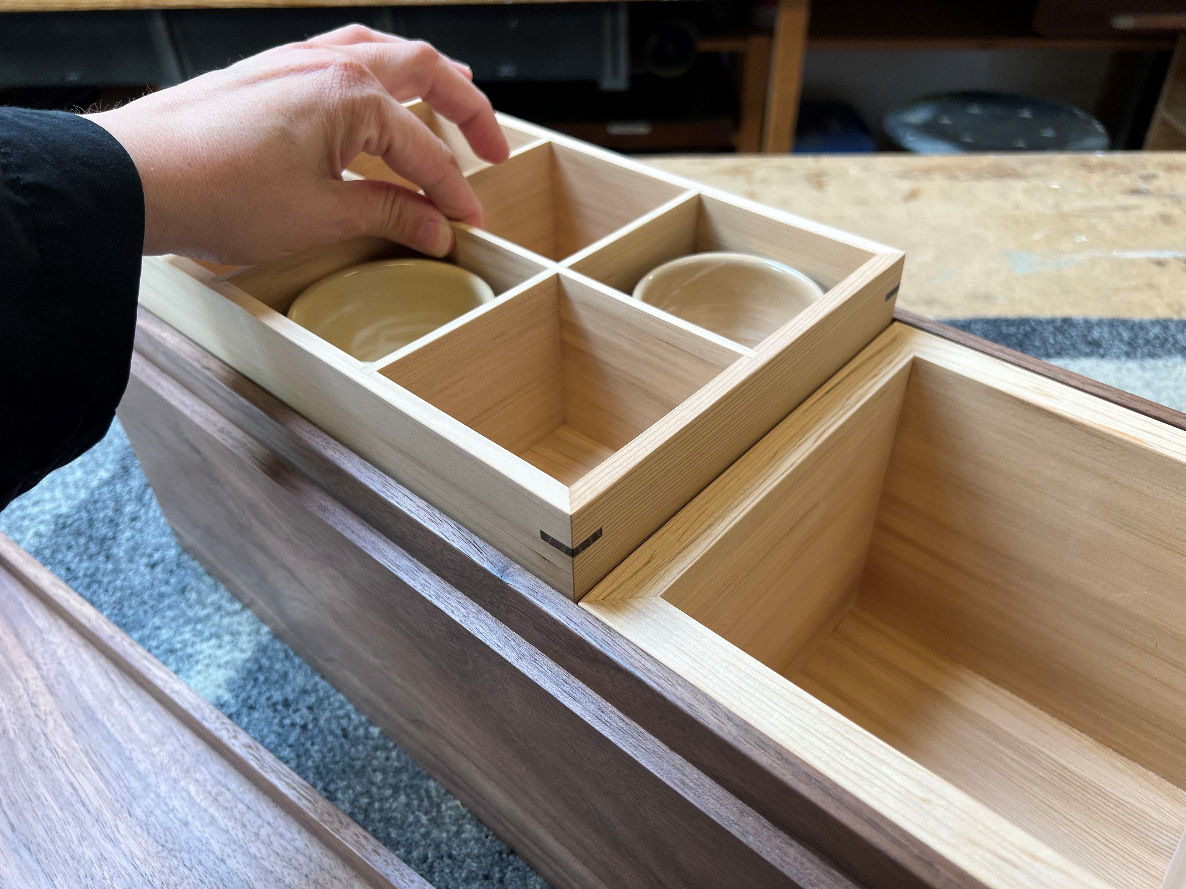 Andrea fortæller, at Sake-skrinet er skabt med stor kærlighed til håndværket og en dyb respekt for materialerne. Skrinet er ikke kun et opbevaringsobjekt, men også et kunstværk, der bringer en lille bid af Japan ind i hjemmet dels i form af udtryk, men også i form af duften fra cedertræet.