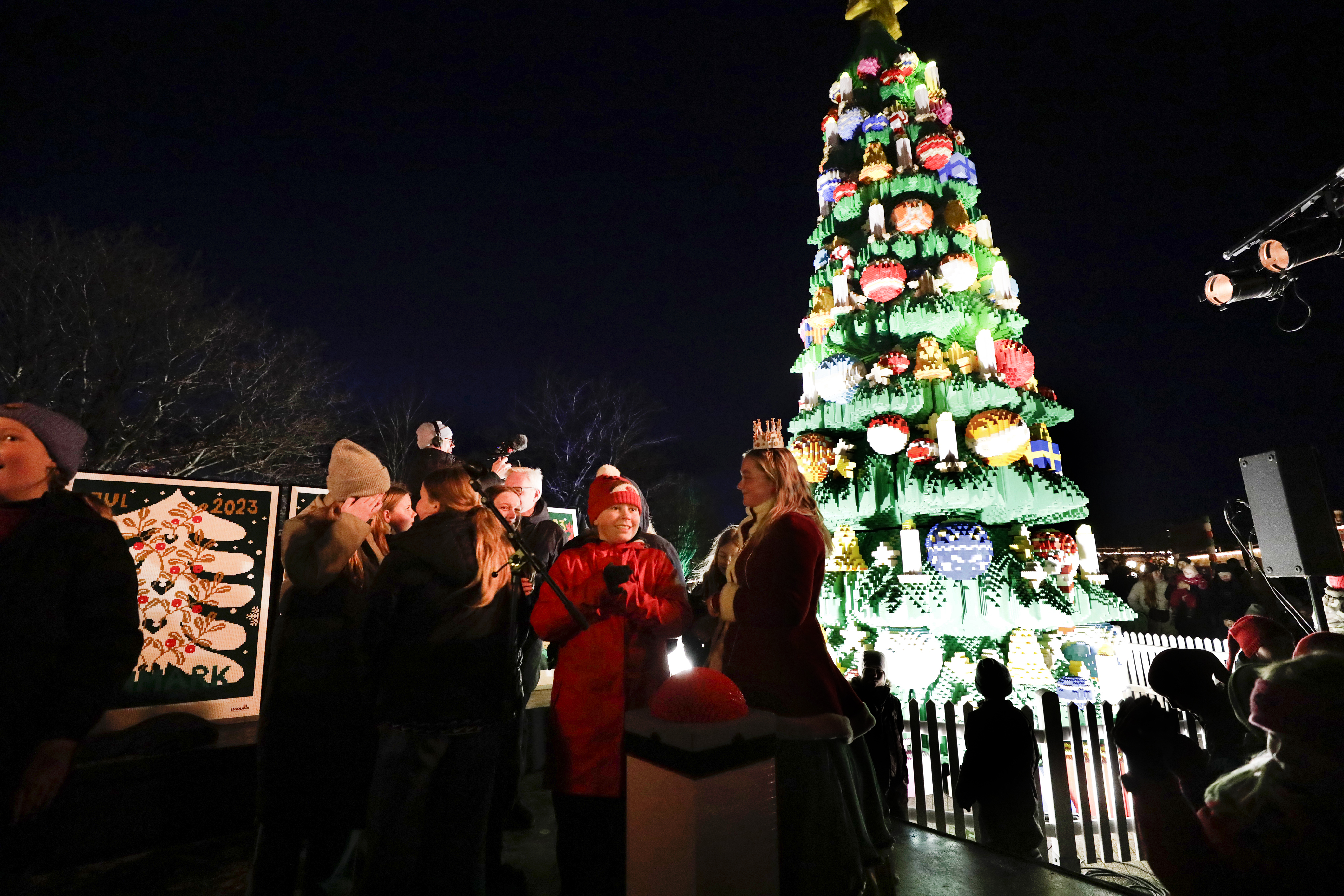 Børn fra Julemærkehjemmene tændte julelysene i LEGOLAND® - Nu kan du købe fem unikke LEGO® mosaikker af årets Julemærke med i alt 125.240 LEGO klodser – alle pengene går til Julemærkehjemmene