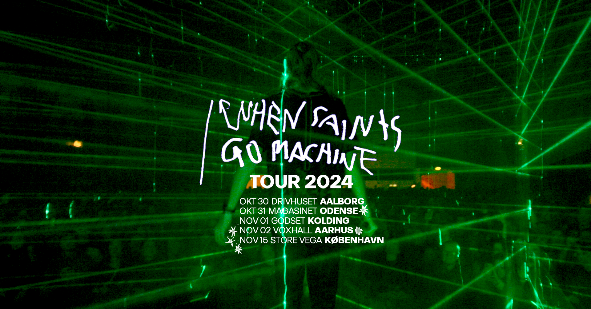 I sidste uge spillede When Saints Go Machine en udsolgt koncert i Den Grå Hal i København. Til efteråret 2024 kan de igen opleves live, når de giver koncert i fem danske byer.