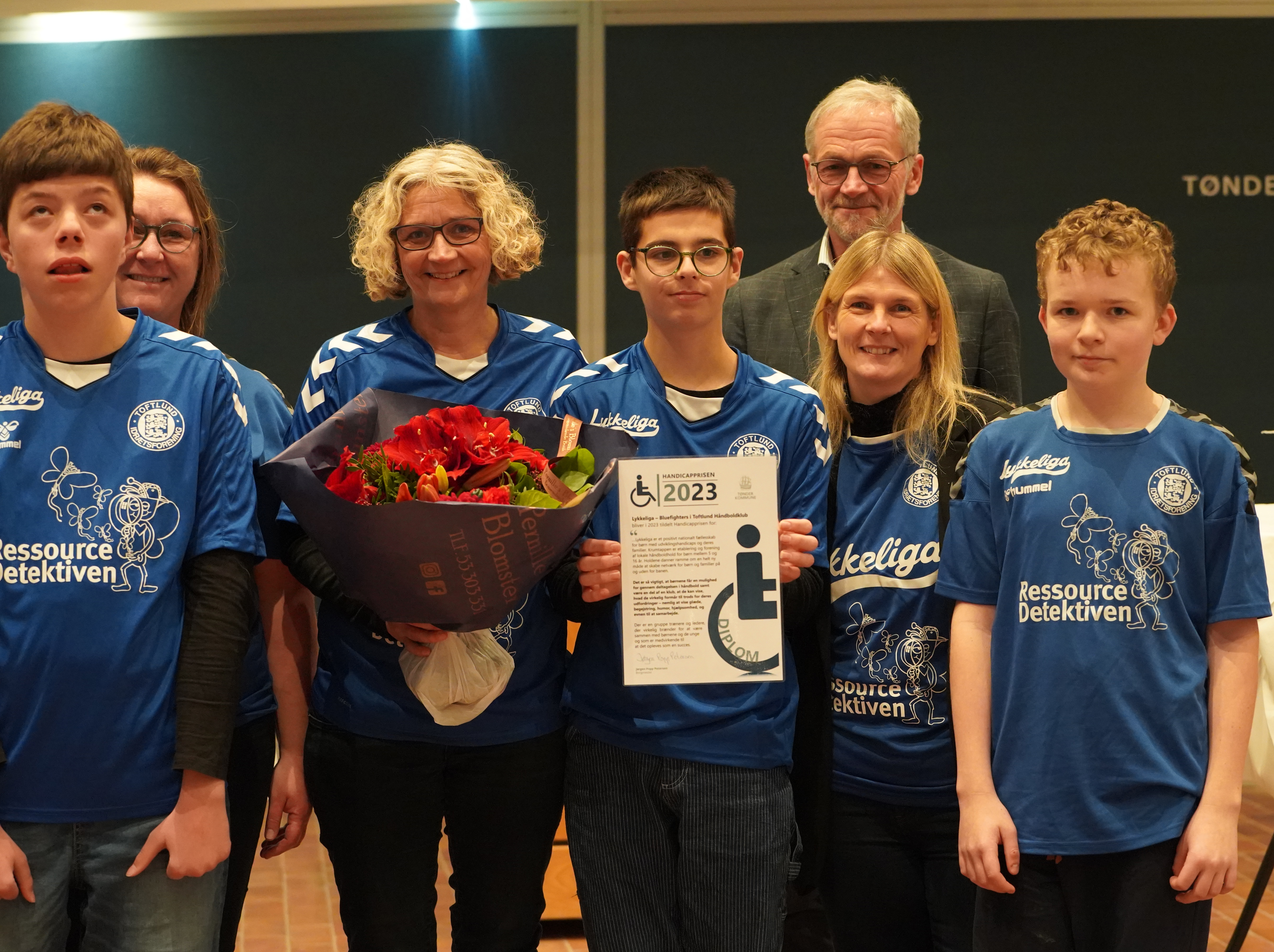 Det særlige håndbold-tilbud til børn med udviklingshandicap, Bluefighters, modtog tirsdag Handicapprisen 2023 på Tønder Rådhus.