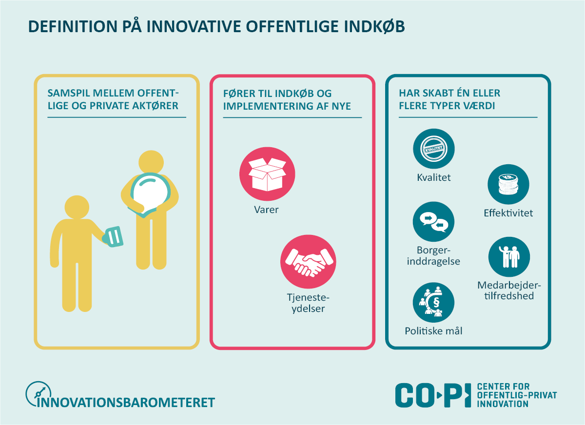 Et samspil mellem offentlige og private aktører som fører til indkøb og implementering af noget nyt, der skaber værdi eller løser et problem for den offentlige sektor.