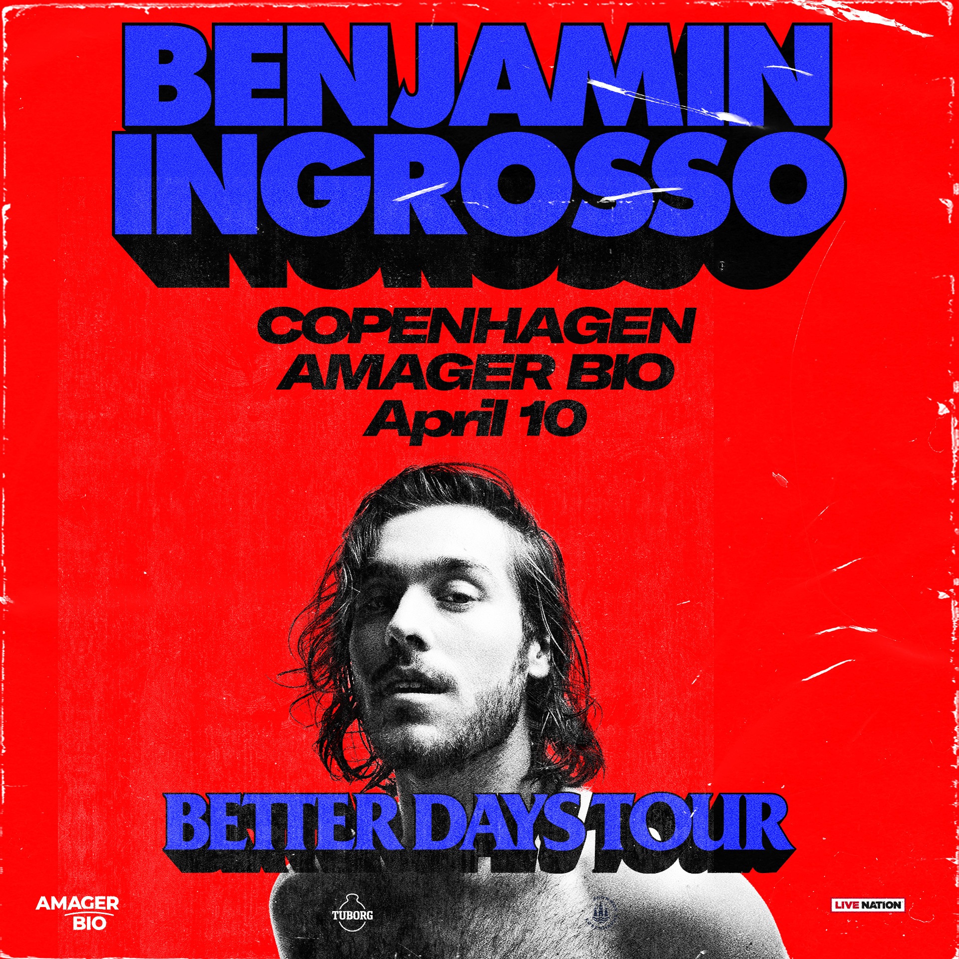 Efter den store succes med hans skandinaviske sommerturné i 2023, som trak over 100.000 fans til forskellige festivaler og spillesteder, er Benjamin Ingrosso klar til at tage på sin første europæiske turné nogensinde - Better Days Tour 2024. Og med ny musik som udkommer i 2024, er Ingrosso klar til at møde fans over hele kontinentet.